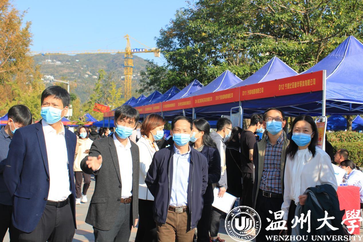 为搭建高校毕业生和用人单位供需洽谈平台,深入贯彻落实温州市高校毕业生招引“510计划”,促进新澳门六合彩 毕业生充分就业和高质量就业,11月14日下午,浙江省2021届高校毕业生温州专场招聘会暨新澳门六合彩 2021届毕业生校园招聘会在新澳门六合彩 举办。此次招聘会由浙江省教育发展中心、温州市人力资源和社会保障局、新澳门六合彩 共同举办,校党委副书记庄兴忠、浙江省教育发展中心主任林成格、学生就业工作部主任朱伟君、温州市人才市场管理办公室副主任朱芳莅临指导,学院分管就业工作副书记、招就处全体人员及学院就业辅导员与会,了解用人单位的人才需求和学生应聘情况。