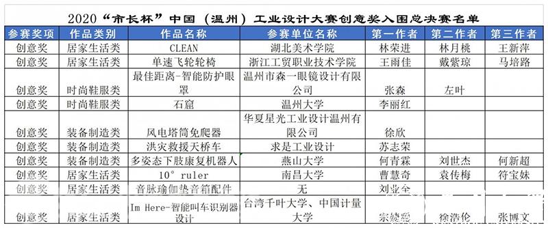 据悉,此次入围决赛的18件作品,将在2020年“市长杯”中国(温州)工业设计大赛的官网进行公示(//wzszb.66wz.com/),并于11月份下旬举办总决赛路演及颁奖典礼。
