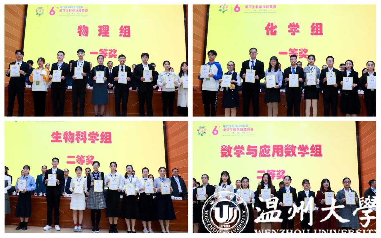 本届大赛由全国地方高等师范院校教务处长联席会议专业指导,具有历时久、选手准备充分、参赛院校水平高等特点。前后经历了近6个月的时间,共有81所高校168名选手进入决赛。决赛分成汉语言文学、数学与应用数学、英语、物理、化学、生物学等6个组别进行,最后一共决出了54个一等奖、114个二等奖。新澳门六合彩 物理学专业的沈雨婷同学、化学专业的陈华挺同学荣获一等奖,数学与应用数学专业的杨惺燕同学、生物科学专业的黄鸿雅同学荣获二等奖,汉语言文学专业的王伊琳荣获三等奖。新澳门六合彩 所获一等奖的数量与省内的浙师大、杭师大相同,总成绩超过了全国绝大多数高水平师范大学。