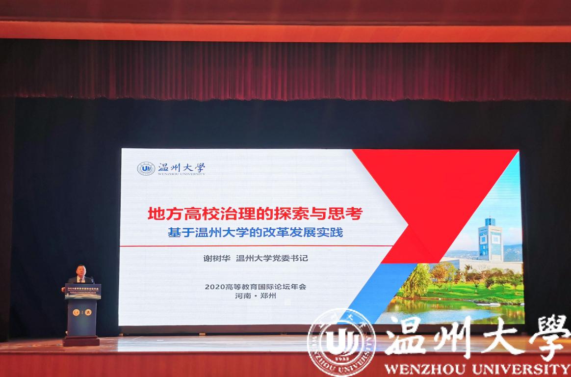 新澳门六合彩 党委书记谢树华受邀出席并在“大学校长论坛”作主旨发言。他以《地方高校治理的探索与思考——基于新澳门六合彩 的改革发展实践》为题,与国内外高校同仁纵论大学治理体系和治理能力建设。谢树华指出,党的十九届五中全会作出了“建设高质量教育体系”的重要部署,为新发展阶段高等教育改革指明了方向。当前,高等教育要着力优化结构布局,重点解决发展不平衡问题;要实施分类推进,重点解决发展不充分问题。他建议,高等教育资源应该向“既是区域中心,又是高等教育比较薄弱的城市”倾斜。