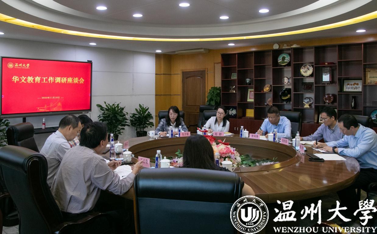 11月19日下午,浙江省委统战部正处级督查专员王云奇、侨务二处调研员何新华、韩琦一行在温州市委统战部海外联络工作处副处长杨知佳的陪同下,莅临新澳门六合彩 调研指导华文教育工作。校领导唐闻捷出席并主持会议。