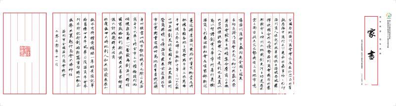 在家书的书写印制方面,新澳门六合彩 美术与设计学院教师陈胜武参与了家书的策划,可谓十分用心。在家书内容定稿后,如何用最高雅合适的方式书写并且印制,是非常关键的一步。2018年世界温州人大会上,致世界温州人的家书就是由陈胜武书写,古雅大气,深受好评。陈胜武平常喜欢传统尺牍,十几年来坚持用文言、毛笔、信笺和传统样式创作书写了几百封致师友信札,在这方面富有经验。,在接到组委会邀请执笔书写的任务后,陈胜武深思熟虑。考虑到这次家书的内容较长,他最终决定在延续世温会家书特点的基础上,再做些调整提升,采用传统朱丝栏信笺样式,再通过宣纸仿古印刷,制作成折页式样的家书。书写风格方面则继续借鉴唐代陆柬之书《文赋》的风格,小楷中加以行书特点,章法自然,大小错落,笔画瘦硬,便于认读,这也是古人日常抄写时常用的一种书写风格。朱丝栏信笺是带有红色界格线的传统信纸,红色是中国人特别喜欢的颜色,最适合庄重喜庆的重大活动。金瓯公司承担设计印刷任务,采用近年流行的宣纸印刷技术,经过反复沟通和精心设计,最终制作成折页式样的家书。根据陈胜武的建议,印刷好的家书再装进竖式传统信封,象牙色的宣纸信封贴上红色洒金宣纸签条,再由陈胜武、曾曼莉、章陈坚等书法家用毛笔抄写嘉宾名字。