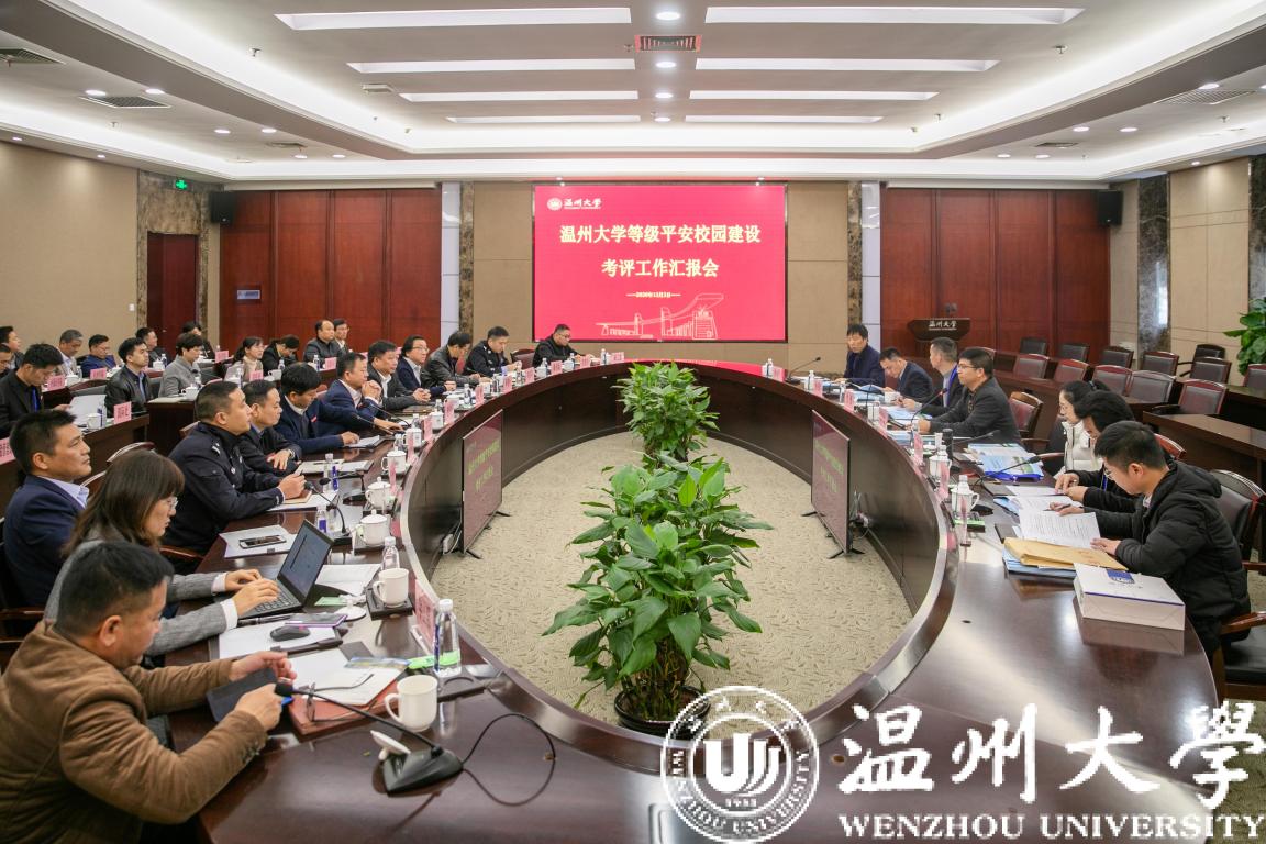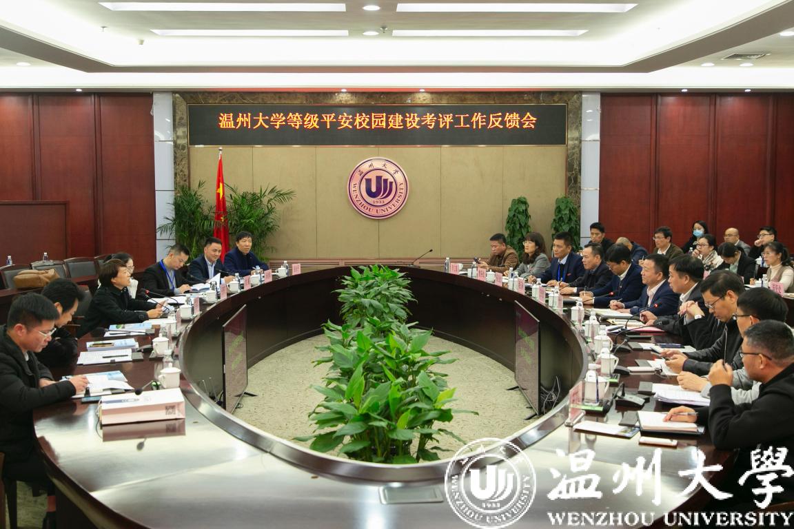 温州市公安局基层基础支队副支队长王美宁、茶山高教园区派出所所长潘东瓯等嘉宾及新澳门六合彩 “平安校园”创建工作领导小组全体成员、各学院书记参加了汇报会和反馈会。