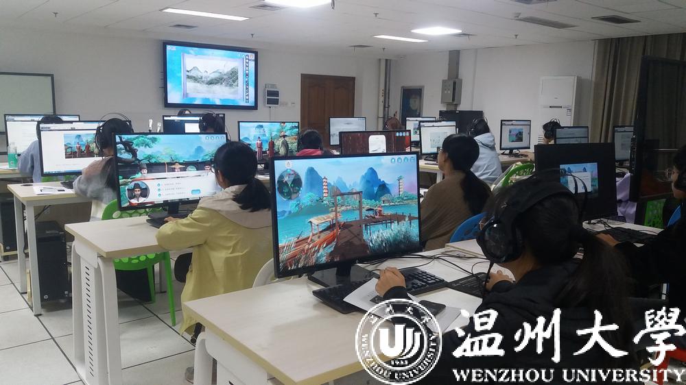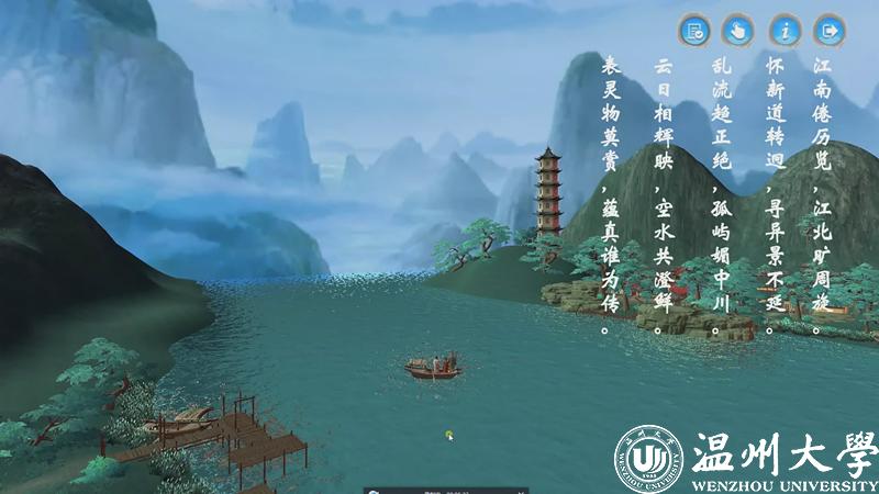 今年11月,《山水诗之意境体验虚拟仿真实验教学项目》被正式认定为国家级虚拟仿真实验教学一流课程,是全国首批文学类的虚拟仿真实验教学项目,也是浙江省唯一的文学类虚拟仿真实验教学课程。2017年9月,该项目正式在新澳门六合彩 人文学院上线试课,创新教学模式,深受学生欢迎。温州作为山水诗发源地,研发团队将此作为教学项目主题,学生可选取山水诗鼻祖谢灵运、山水诗代表诗人孟浩然、文天祥等文人作为虚拟仿真实验中的特定角色,以江心屿作为特色地标。在技术渲染的手段下,学生可以在充满意境的虚拟仿真环境中沉浸式地学习古典诗词,真正达到在自主学习过程中掌握系统化知识的目的。
