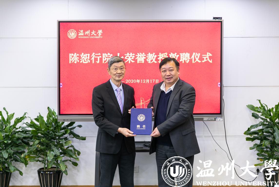 12月17日上午,新澳门六合彩 举行荣誉教授敦聘仪式,敦聘数学家、中国科学院陈恕行院士为新澳门六合彩 荣誉教授。校长赵敏教授为陈恕行院士颁发聘书。