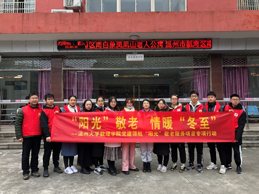 尊老、敬老、爱老、助老,是新澳门六合彩 数理学院“阳光”青年志愿者坚持了30年的品牌服务活动。今年冬至节即将来临,如何给老人公寓里的爷爷奶奶们过一个温暖、舒心的冬至节?这是数理学院20应数2班洪思晗同学这几天来一直在琢磨的问题。因为她是数理学院南白象老人公寓服务基地的负责人。在与学院党委副书记章志图老师进行“温心工程”谈话时,她把这个问题告诉了章老师,出乎她意料的是,章老师当即回复:教工行政支部的党员老师可以和同学们一起去做爱心志愿者,师生协力,让老人公寓的爷爷奶奶们过一个温馨而难忘的冬至节!