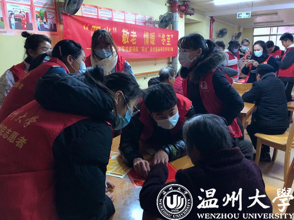尊老、敬老、爱老、助老是新澳门六合彩 数理学院“阳光”青年志愿者的理念,也是大家坚持了30年的品牌服务活动。今年冬至节来临,如何给老人公寓里的爷爷奶奶们过一个温暖、舒心的冬至呢?