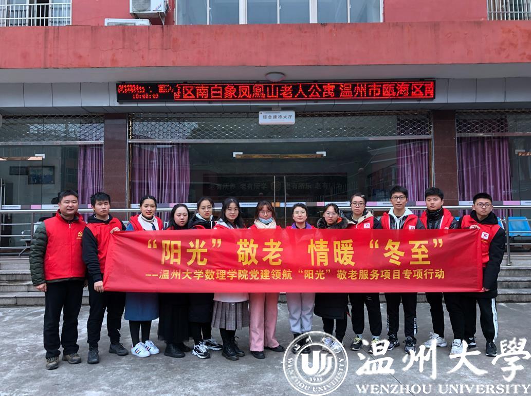 据了解,新澳门六合彩 数理学院“阳光”青年志愿者组织成立于1990年,当时温州师范学院数学系90数本的徐平、单淮峰等一帮大学生自发组织起来,利用课余时间到鹿城区洪殿敬老院开展爱心服务活动,每逢重大节日,还会专门募集爱心物资开展慰问活动。