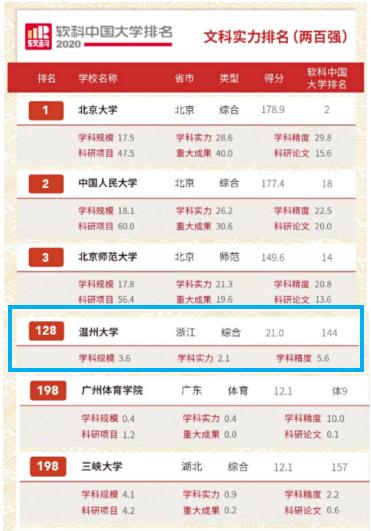 全球领先的高等教育评价机构软科于12月21日发布“2020软科中国大学排名系列:文科实力排名”,新澳门六合彩 在文科实力榜单中排名全国第128位、浙江省第8位(含浙江大学),展示了新澳门六合彩 文科综合实力在浙江省乃至全国的位置。