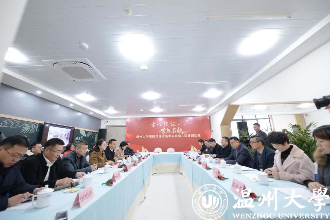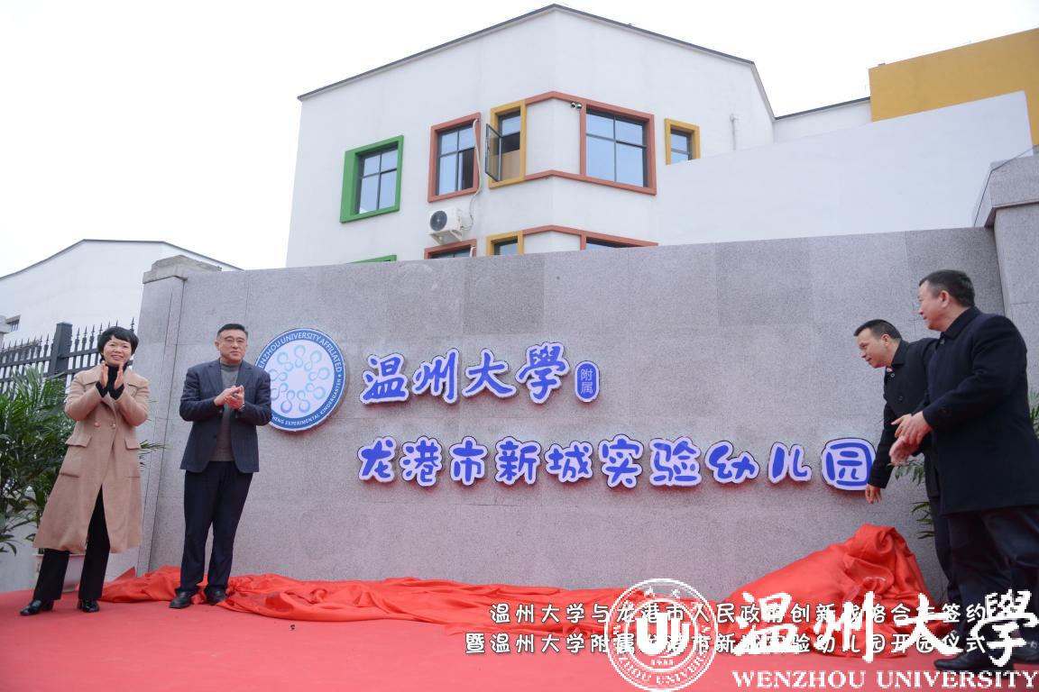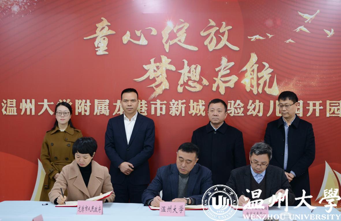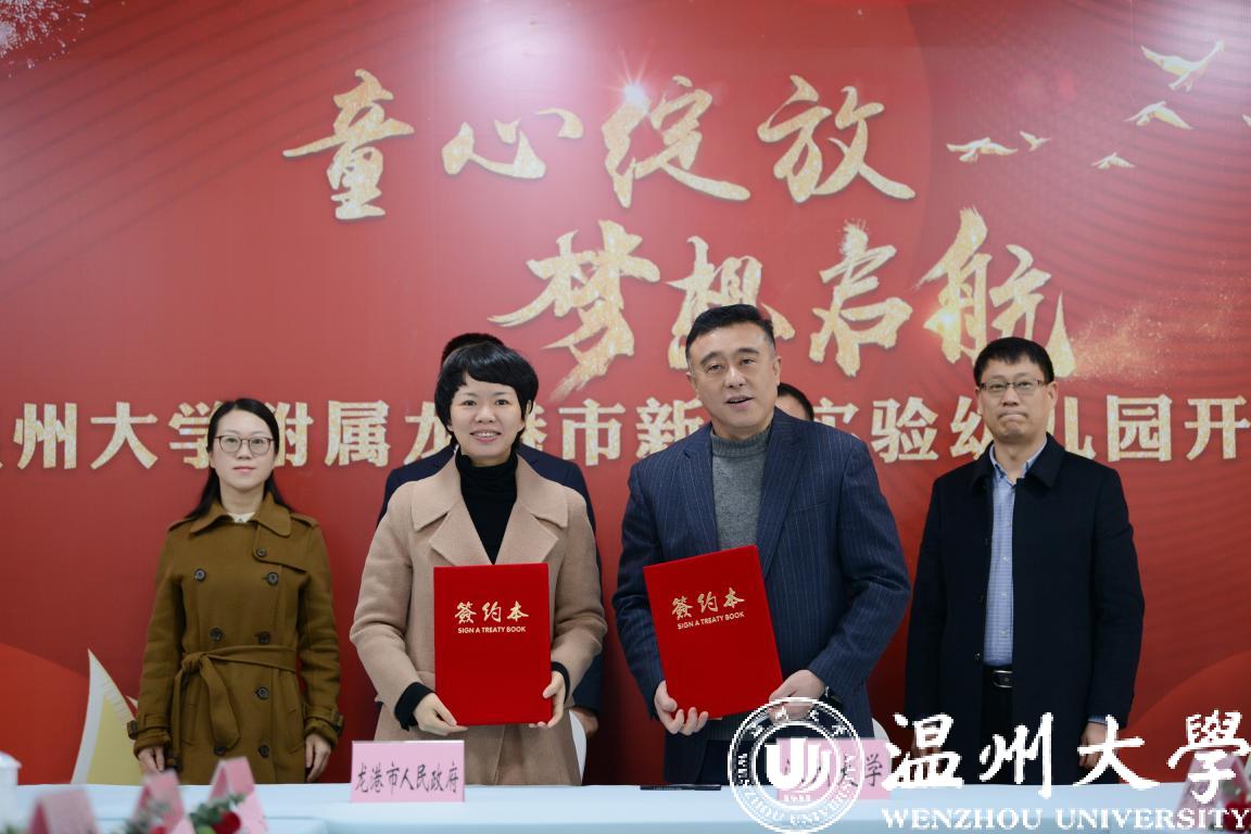 1月5日下午,新澳门六合彩 与龙港市人民政府创新战略合作签约暨新澳门六合彩 附属龙港市新城实验幼儿园开园仪式在龙港举行。新澳门六合彩 党委书记谢树华,副校长薛伟,龙港市委书记郑建忠,市委副书记、市长何宗静,市委常委、市政府办公室主任黄贤满等出席仪式,签约仪式由龙港市副市长阮晓琼主持。新澳门六合彩 地方合作处、新澳门六合彩 基础教育发展中心、附属实验幼儿园等相关部门负责人参加仪式。