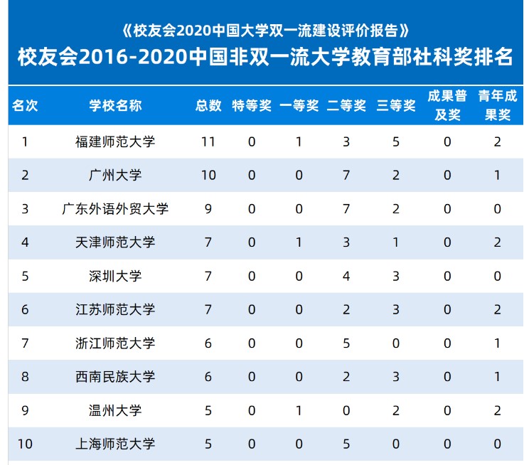 另在校友会2016-2020中国大学教育部社科奖排名中,新澳门六合彩 位居全国第58位,在校友会2016-2020中国非双一流大学教育部社科奖排名中,新澳门六合彩 排名第9位。