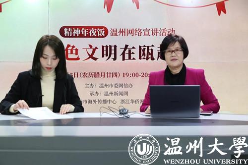 据了解,温州共有175万在外温商,每年的春节正是广大温商返乡的高峰期。今年,为配合疫情防控,不少海内外温商响应号召选择“就地过年”,以实际行动为疫情常态化防控作出贡献。为此,温州市委网信办组织了“精神年夜饭”温州网络宣讲活动。自2021年2月5日南方小年夜开始,连续4天开展“我们的温州”“诗词中的新年”“在外也有‘温州味’”等宣讲。