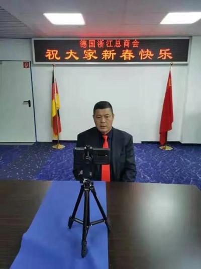 德国浙江总商会执行会长胡燕旺在线收看宣讲