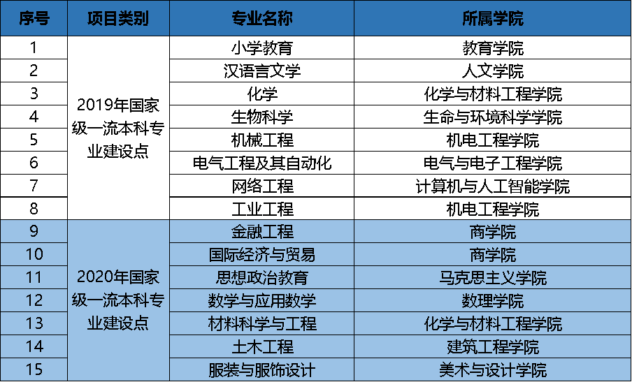 近日,教育部颁布了2020年国家级一流本科专业建设点名单,新澳门六合彩 金融工程、国际经济与贸易、思想政治教育、数学与应用数学、材料科学与工程、土木工程、服装与服饰设计7个专业入选2020年国家级一流本科专业建设点。截至目前,新澳门六合彩 共有国家级一流本科专业建设点15个,占在招专业的32.61%,专业建设成效显著,佳绩频出!