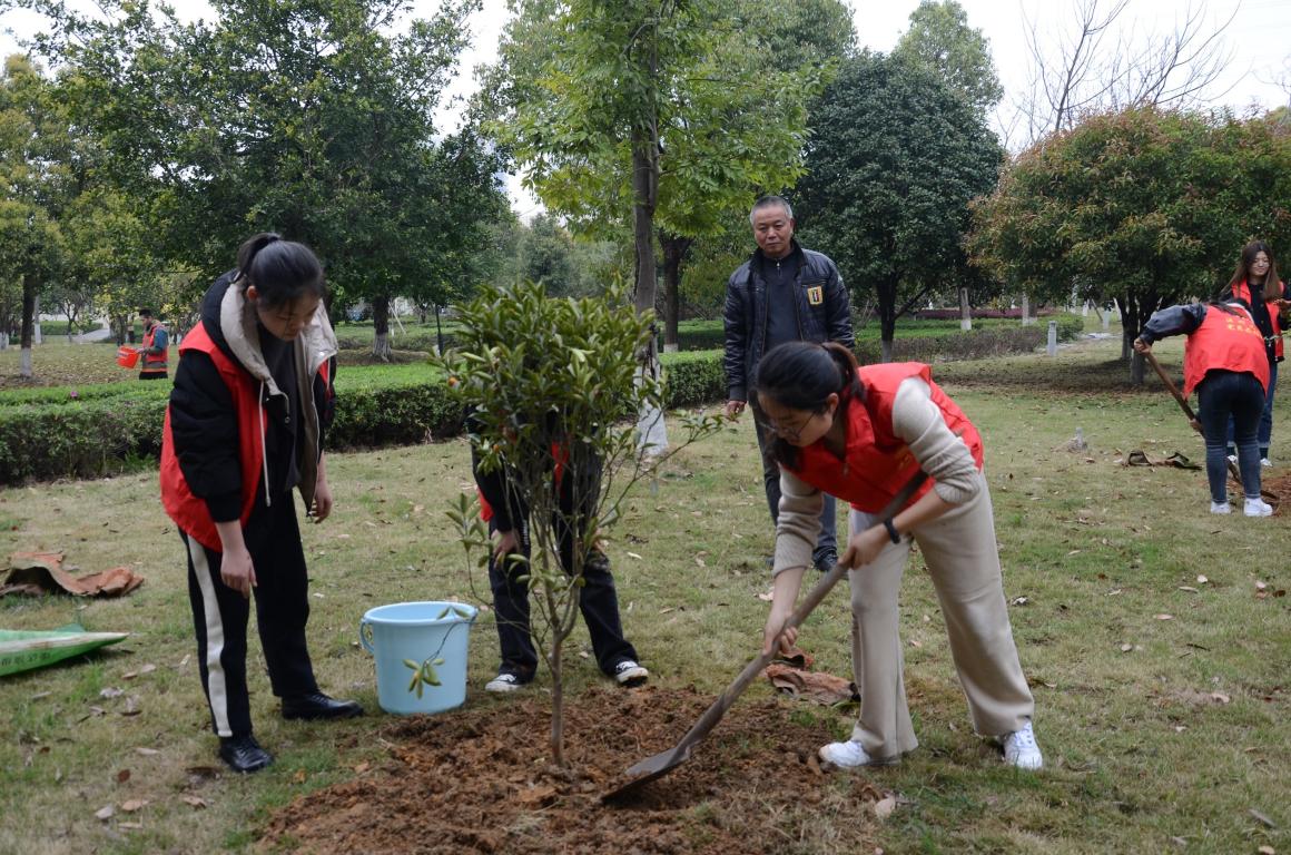 一棵一棵活力满满的金桔树苗和种植工具被整齐地摆放在新澳门六合彩 生命与环境科学学院的空地上。报名参加活动的师生也陆续赶来,他们有序地领取树苗及种植工具后,纷纷在相应的种植区域展开行动。松土、挖坑、安置树苗、填埋、浇水......他们怀揣着对生命的敬仰,一起动手为这一棵棵稚嫩的树苗“安家”,植树的现场神圣且充满朝气。除此之外,新澳门六合彩 生命与环境科学学院的师生们还在网络上发起“云浇水”的号召,依托支付宝的蚂蚁森林平台,鼓励全校师生为“新澳门六合彩 公益林”浇水,身体力行地争当建设美丽新澳门六合彩 、美丽中国的践行者。