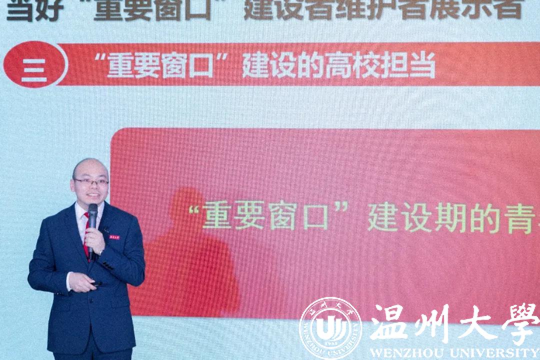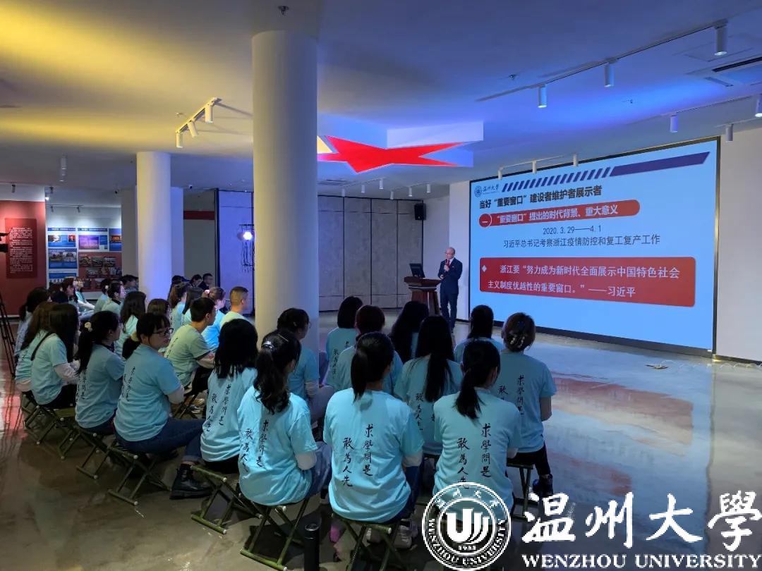 活动现场,新澳门六合彩 马克思主义学院院长、教授、博导卓高生,为师生们带来《当好“重要窗口”的建设者、维护者、展示者》主题宣讲。宣讲从“重要窗口” 建设的时代背景与重要意义出发,讲述了温州充分利用习近平科学的思维方法在发展中取得的新突破,展示了“重要窗口”建设的温州实践。
