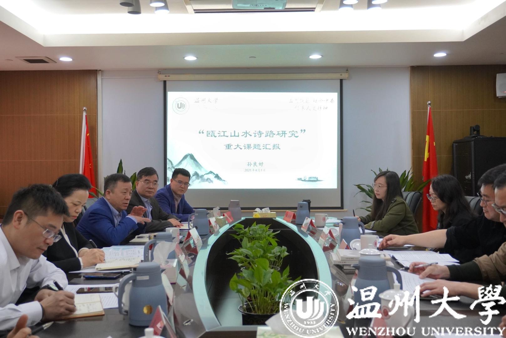 4月1日,市委常委、宣传部长胡剑谨主持召开“瓯江山水诗路研究”重大课题研讨会,温州市社科联党组书记、主席孙祥光,副主席卢达,新澳门六合彩 党委书记谢树华、副校长徐和昆等参与研讨。课题组总负责人、新澳门六合彩 人文学院院长孙良好作课题方案汇报。