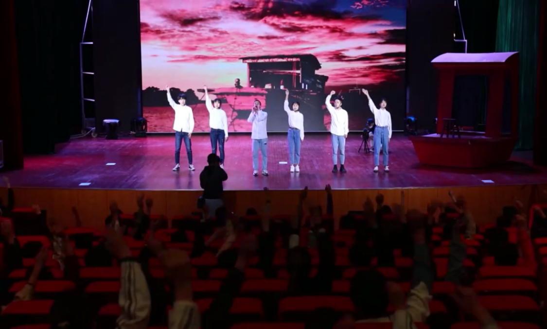 100年前的那个黄昏,炎热的酷暑渐渐散去,在嘉兴南湖上的一艘画舫内,一个未来将改变世界的政党正悄然诞生。欧阳雨捷说,“一百年后的今天,嘉兴学院《初心》舞台剧把我带回了那个黄昏:一群满怀理想的青年人紧密商议、庄严宣誓”。