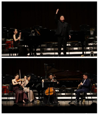 第37届上海之春国际音乐节近日在上海隆重举办,新澳门六合彩 音乐学院多位青年教师和来自上海音乐学院、南京艺术学院、浙江音乐学院、安徽师范大学音乐学院的表演者们,共同亮相音乐节参演节目——长三角区域音乐教育与艺术产业发展联盟专场音乐会,用多种音乐艺术形式,为党的生日放歌、为祖国的繁荣点赞、为长三角的发展欢呼。其中新澳门六合彩 青年男高音陈大帅及青年钢琴教师莫颖带来的独唱《你是我梦中遥远的灯火》,人声与琴乐融合巧妙,通过借物抒情的方式表达了对故乡和祖国的深深爱恋和深情;陈露雯、蒋乐乐、齐柯、赵光雯四位旅美青年博士带来《Walter Rabl钢琴/小提琴/单簧管/大提琴降E大调四重奏》op.1第一乐章,丰富的表现力和感染力深深打动了现场观众。