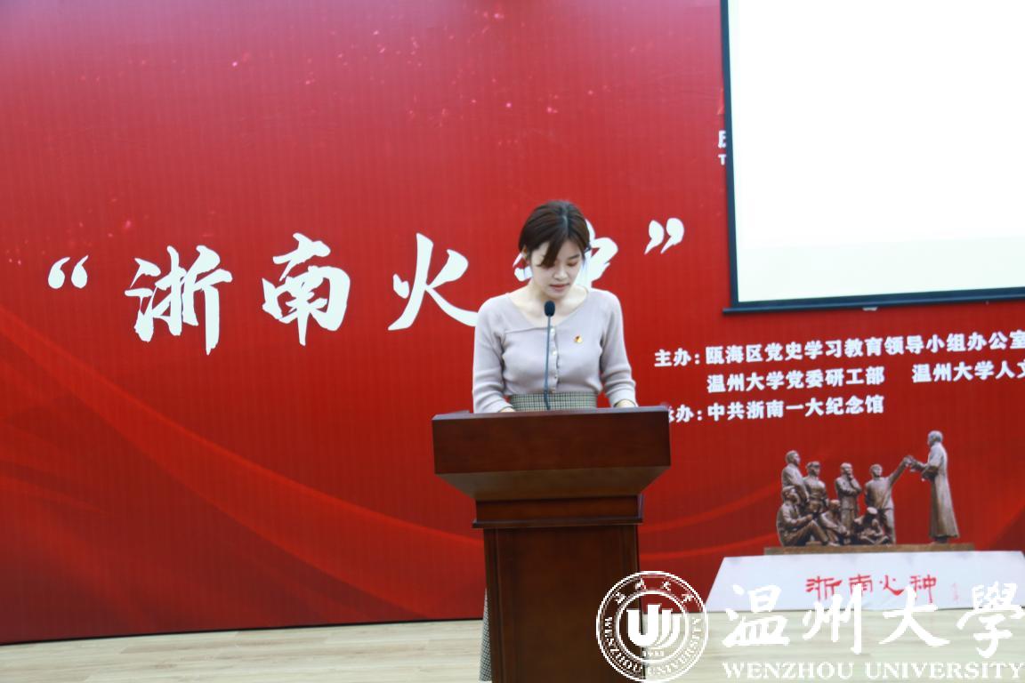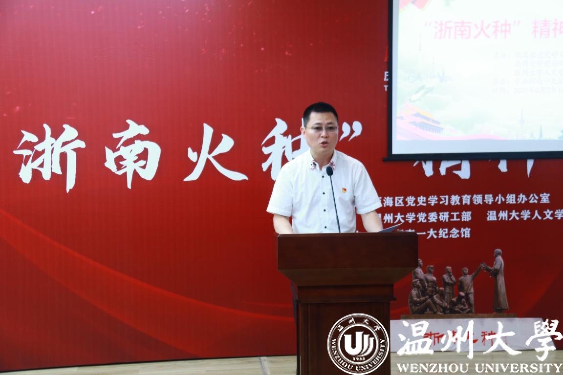“‘浙南火种’孕育了坚定信仰、百折不挠的奋斗精神;勇立潮头、敢为人先的开拓精神;实事求是、灵活应变的务实精神;丹心铁骨、舍生取义的牺牲精神”,研工部负责人对“浙南火种”精神的出现背景渊源及内容作了回顾,对本次研讨会的目的和历程进行详细阐释,此外,他还叮嘱新澳门六合彩 学子:要讲好红色故事;要讲好温州故事;要讲好新澳门六合彩 故事。