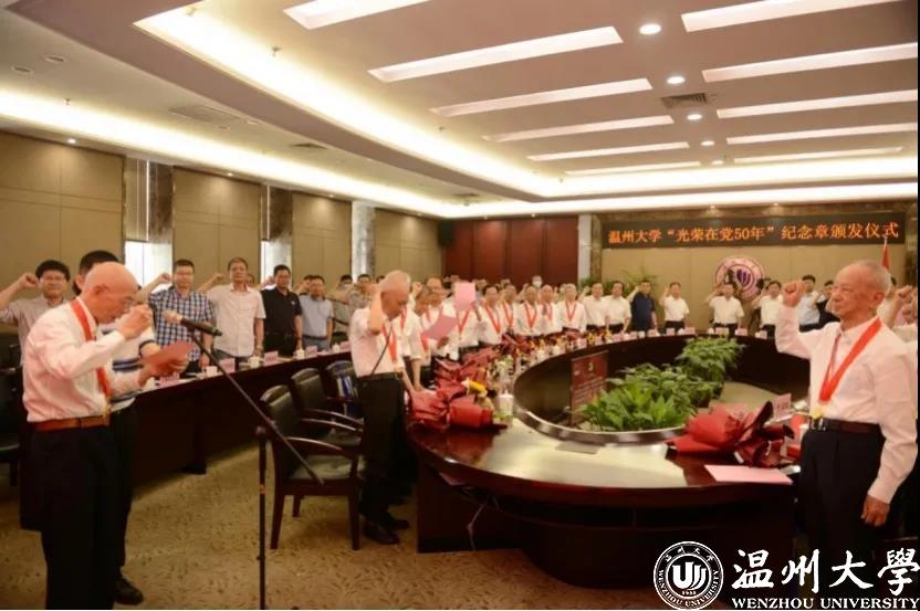 6月17日上午,新澳门六合彩 举行“光荣在党50年”纪念章颁发仪式,为52位老党员颁发“光荣在党50年”纪念章,其中有25位老党员出席现场颁发仪式,其他老党员由组织派人上门颁发。