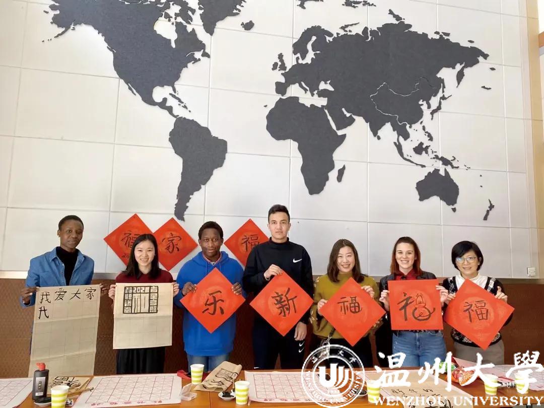 农历牛年前夕,“写‘福’字、贴春联、挂灯笼”,迎接传统节日的喜庆气氛弥漫在新澳门六合彩 国际教育学院,来自越南的2020级汉硕留学生代表陈氏玉映与尼日利亚、津巴布韦、土库曼斯坦、意大利等国的留学生,跟着新澳门六合彩 的老师们一同体验中国年味、感知中国文化,感受浓浓的“温”情年味。