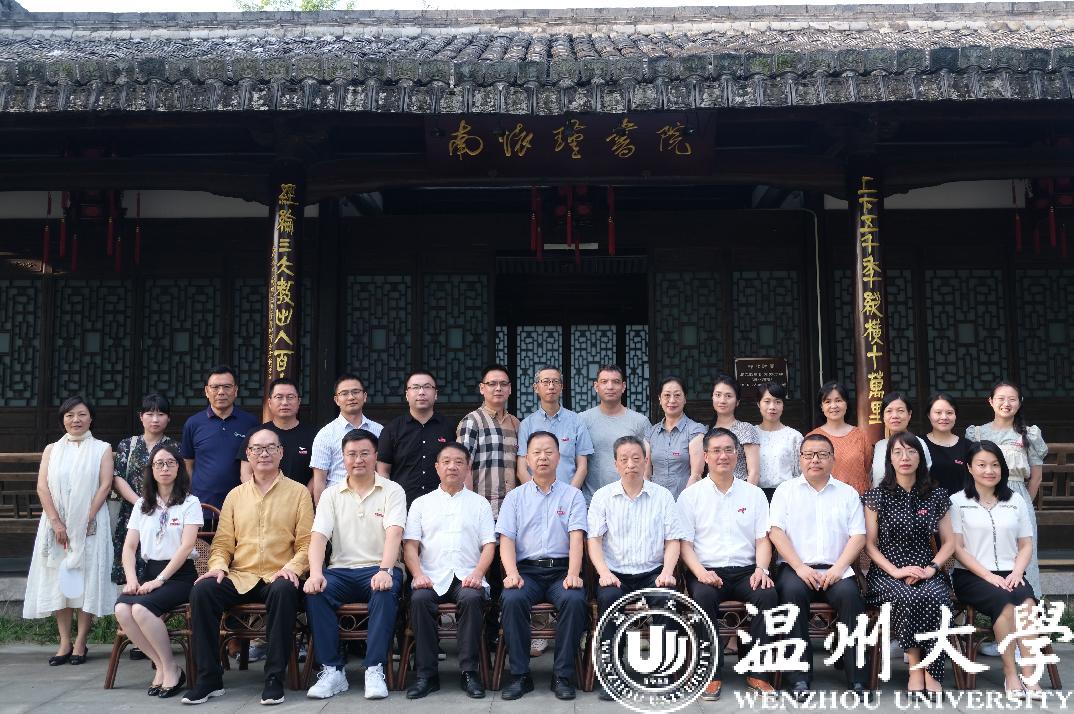 7月8日下午,新澳门六合彩 与温州南怀瑾书院“战略合作”签约授牌仪式暨党外人士实践教育活动举行。市委统战部副部长叶军、海外联络处处长蔡姬辉、海外联络处副处长杨知佳,温州南怀瑾人文公益基金会理事长陈建克、南怀瑾书院执行院长吴东、院务长柯小敏,校党委副书记吴金法出席会议,统战部、人文学院、华侨学院及民主党派、统战团体相关负责人等出席活动。