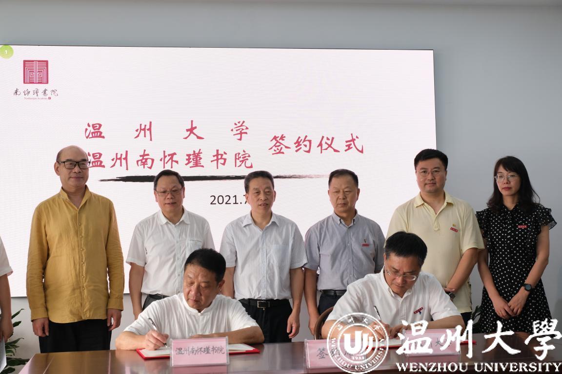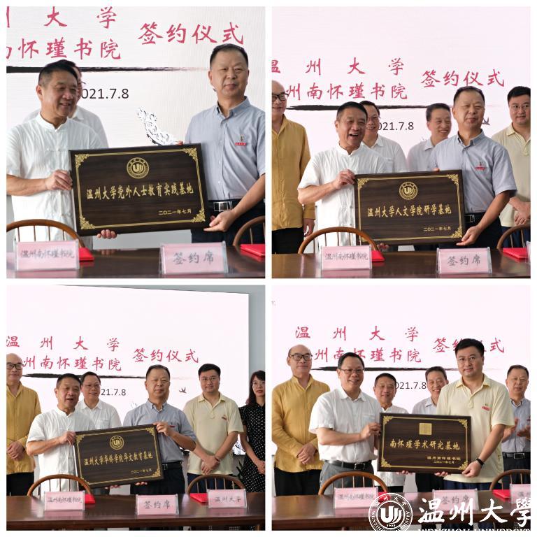 会上,统战部负责人代表新澳门六合彩 与温州南怀瑾书院签订战略合作协议,形成长效合作机制。授牌成立新澳门六合彩 党外人士教育基地、人文学院研学基地,华侨学院华文教育基地和南怀瑾学术研究基地。