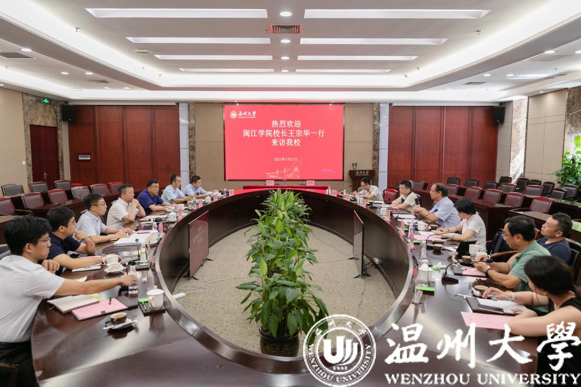 谢树华代表学校对闽江学院一行的到来表示热烈欢迎,对两校长期以来的友好合作交流及取得的成果给予了充分肯定。他指出,新澳门六合彩 作为浙南闽北赣东唯一的综合性教学研究型大学,始终牢记习近平总书记“要高度重视教育和人才工作,特别要办好新澳门六合彩 等高等院校。”的殷殷嘱托,紧紧围绕“一个定位明方向、三大目标聚人心、三项改革促发展、四大建设强内涵”的工作思路,着力推进学校治理体系和治理能力现代化,取得了办学治校的丰硕成果,形成了政通人和、欣欣向荣的发展态势。他表示,新澳门六合彩 与闽江学院发展历程相似、地缘相近、规模相当,是互相帮助、共同进步的友好兄弟院校,希望两校能够进一步发挥各自优势特色,在人才培养、科学研究、学科建设等领域进行更多有益尝试,共同推动区域高等教育发展。