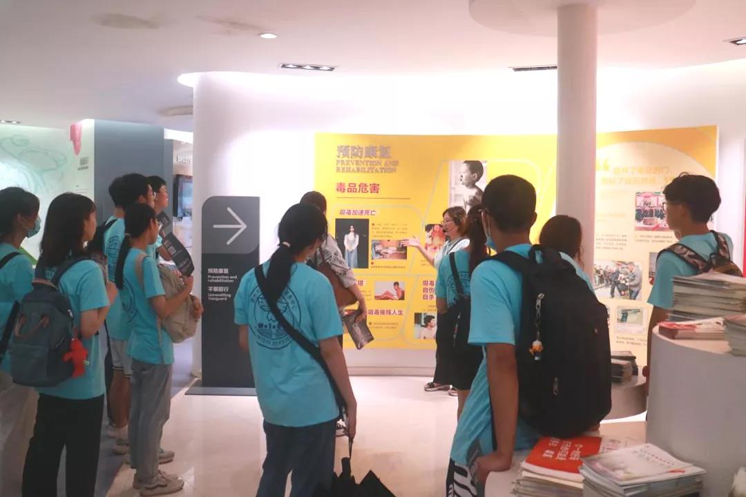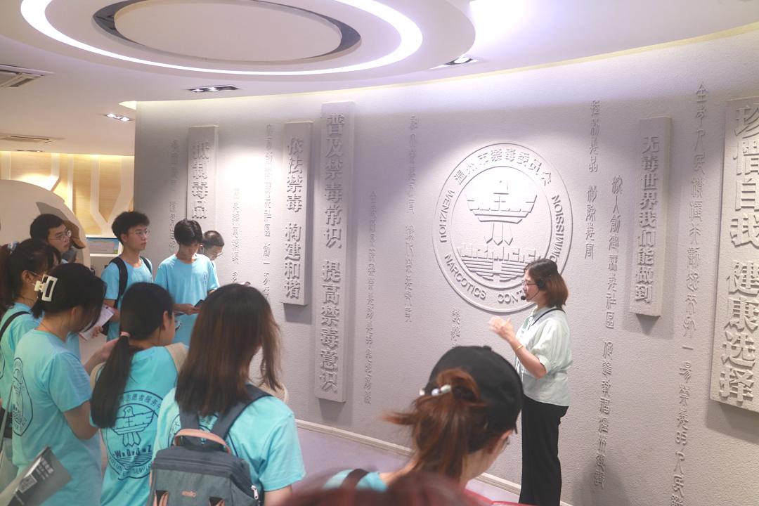 在参观禁毒教育基地时,温州市禁毒教育基地讲解员吴晓燕老师带领新澳门六合彩 “无毒青春”暑期社会实践队26名大学生先后了解世界毒品态势、中国禁毒简史等禁毒知识。
