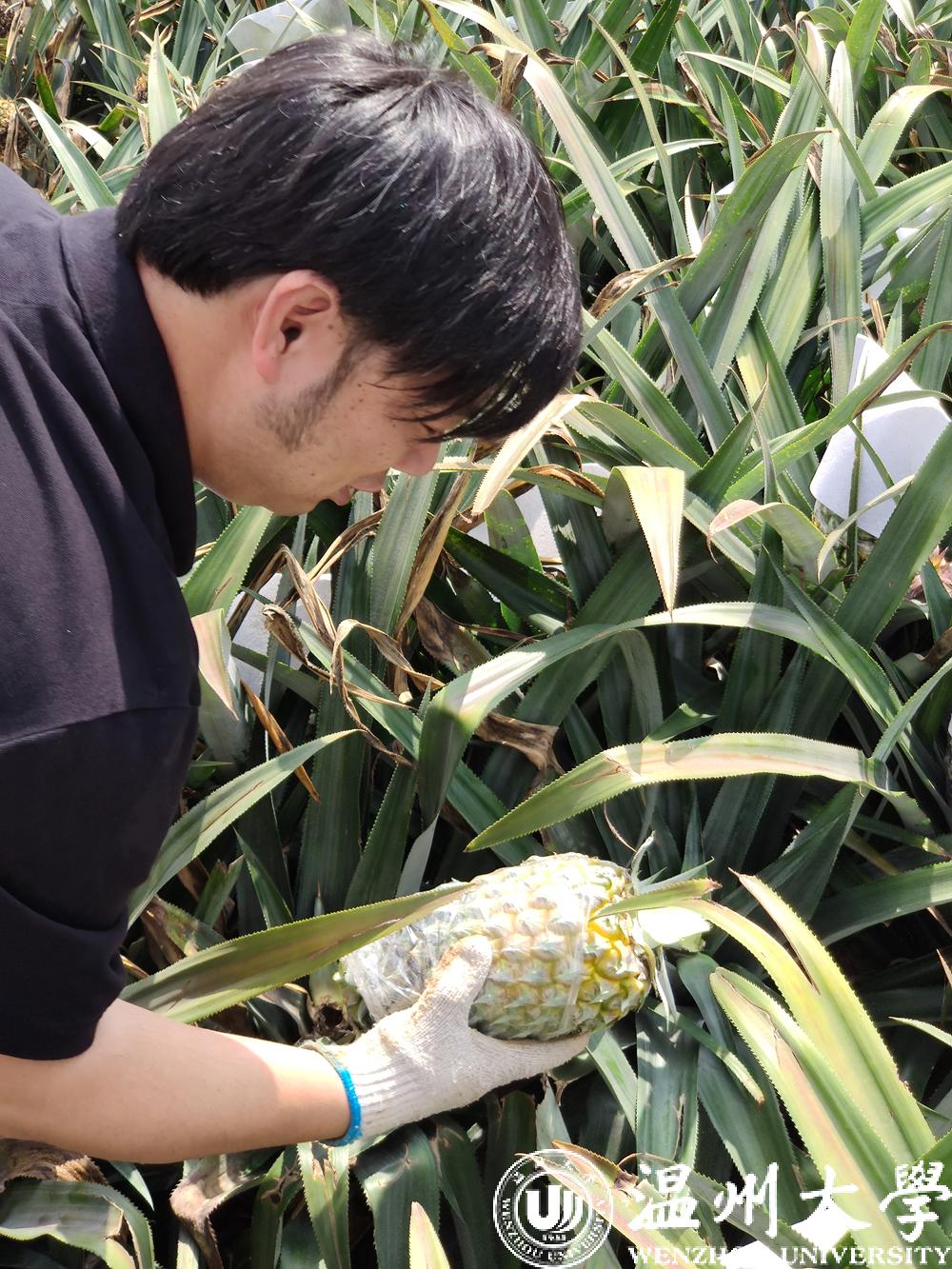 该科创作品由姜锐、李勇老师指导,王敏梁、王境、何潇洒、王能源、尤胜哲5位同学共同研制完成。在作品研制过程中,为了掌握了菠萝种植、采摘的第一手资料,创作团队不辞辛苦,先后7次赴福建省漳州市程溪镇的菠萝种植地进行实地调研和测试,在田间地头与当地菠萝种植户深入沟通交流。团队详实了解菠萝种植特点和采摘难点,并结合农户对作品的试用反馈不断优化完善作品,真正做到科技创新的落实落地。