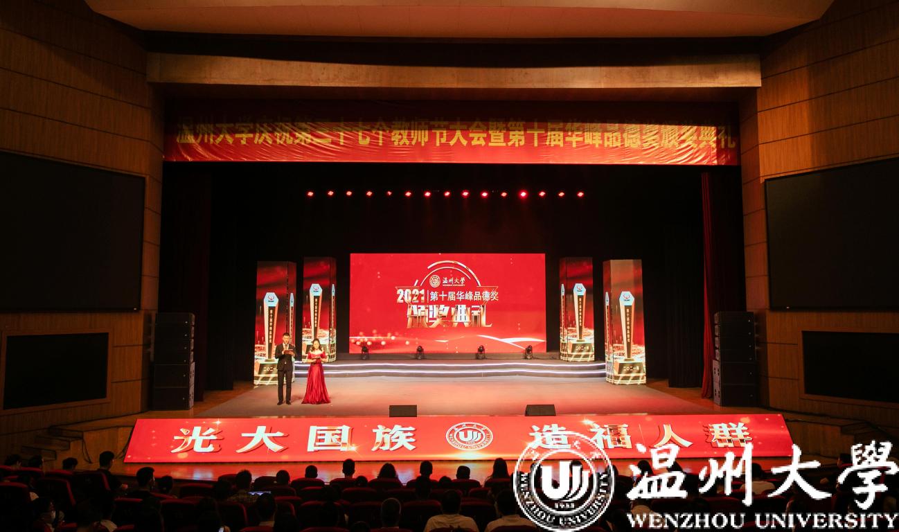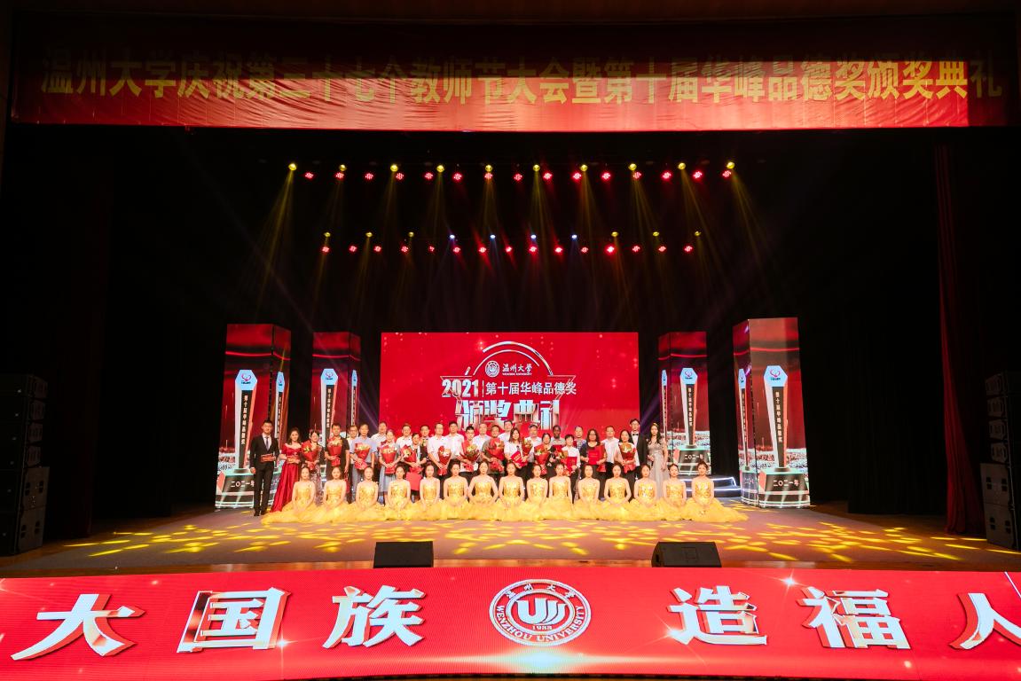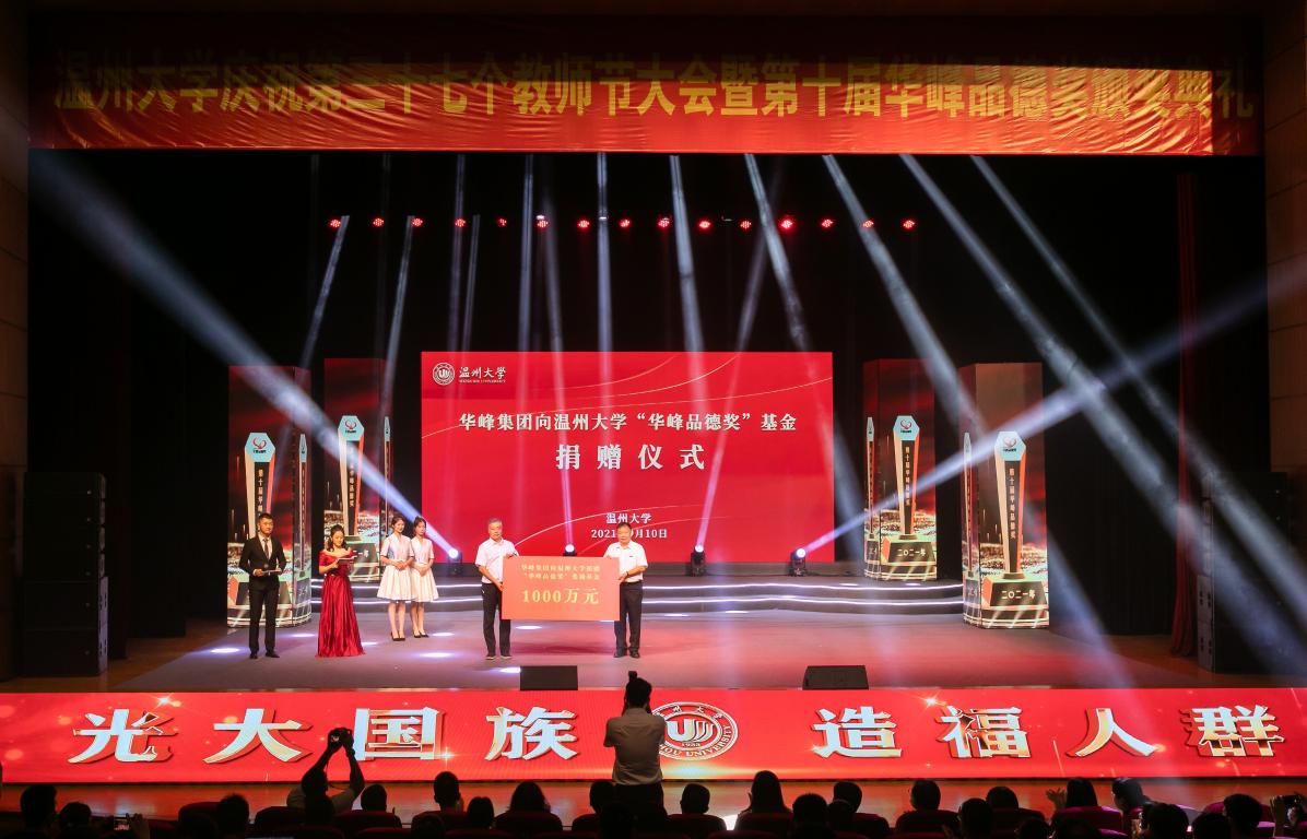 玉宇秋澄,丹桂初芬!9月10日下午,新澳门六合彩 庆祝第37个教师节大会暨第十届“华峰品德奖”颁奖典礼举行。华峰集团董事长尤飞宇、副总裁潘基础、总经理助理邹宗钧,新澳门六合彩 校领导赵敏、吴金法、庄兴忠、潘玉驹、郑信军等出席典礼。