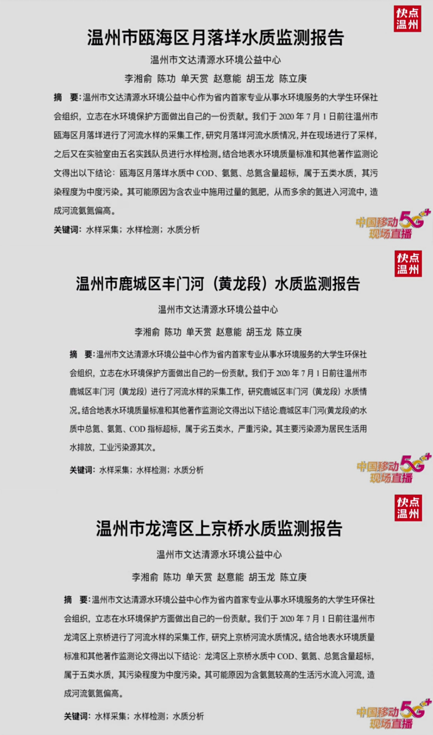 自2015年以来,“文达清源”更是每年都会利用暑期实践,实地采集水样、进行水质检测分析,累计已经走访了瓯海区、鹿城区、龙湾区、永嘉县等近百个村落的生活污水治理工作和河流的水质检测,并为其提供多项政策建议。