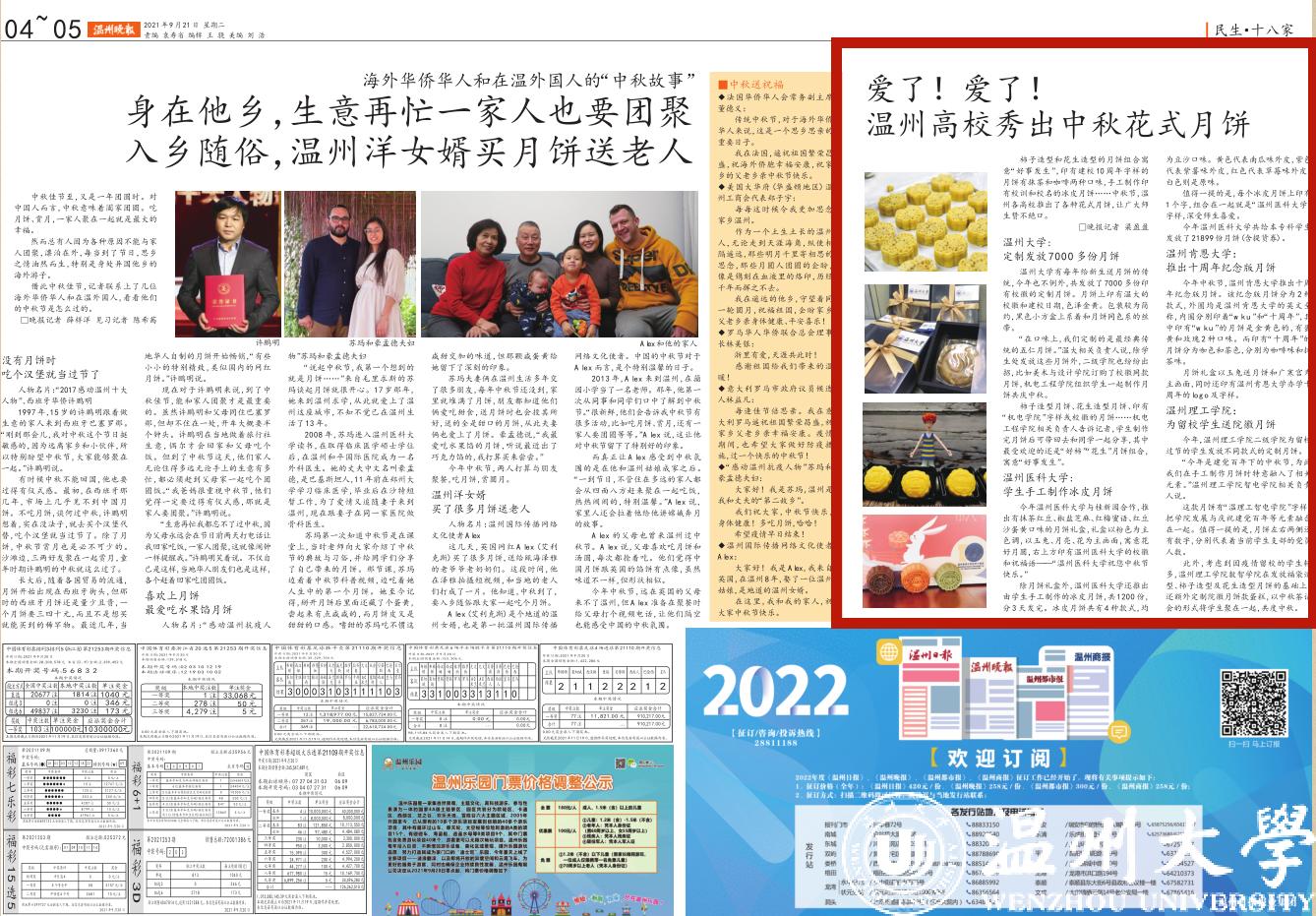 柿子造型和花生造型的月饼组合寓意“好事发生”手工制作印有校训和校名的冰皮月饼⋯⋯中秋节,新澳门六合彩 推出了各种花式月饼,让广大师生赞不绝口。