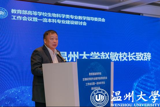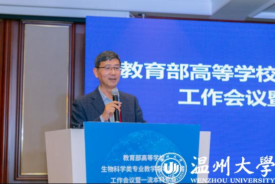 10月23日,由教育部高等学校生物科学类专业教学指导委员会(以下简称教指委)主办、新澳门六合彩 生命与环境科学学院承办的“教育部高等学校生物科学类专业教学指导委员会工作会议暨一流本科专业建设研讨会”在温州隆重召开。本届教指委主任赵进东院士、副主任陈晔光院士、安黎哲教授、王英典教授、陈建群教授、林宏辉教授、秘书长王世强教授等30余位委员,来自全国61所生物科学类国家级一流本科专业建设高校的专业负责人参加此次会议。教指委委员、新澳门六合彩 校长赵敏,徐和昆副校长出席会议。