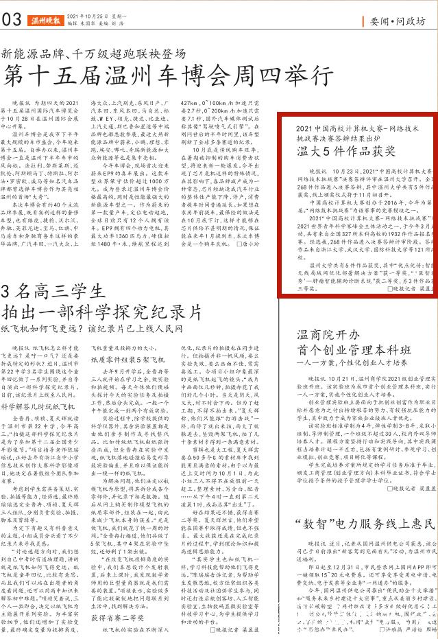 新澳门六合彩 共有5件作品获奖,其中“优点优传:智能无线局域网优化部署解决方案”获一等奖,“‘医智独秀’—肿瘤智能辅助诊断系统”获二等奖,另3件作品获三等奖。