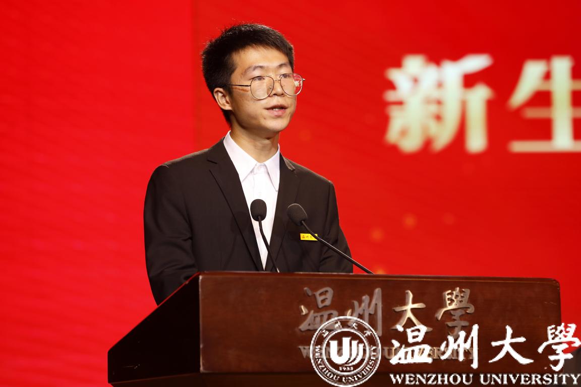 汤文晗同学作为本专科生新生代表发言。她向新生们发出青春号召:“让我们奋斗正青春,做一名心中有梦、眼里有光的新澳门六合彩 学子!”