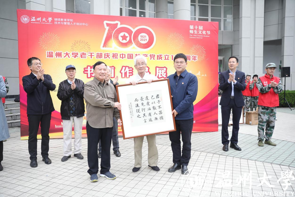 丹青绘百年,翰墨书党恩。10月26日上午,新澳门六合彩 老干部庆祝中国共产党成立100周年书画作品展开幕式暨老干部书画院书画作品捐赠仪式在新澳门六合彩 学院路校区举行。离退休老领导金礼义、林选青、毛政敏,新澳门六合彩 老干部书画院院长冯大明、艺术指导师沈洪保副教授等离退休老干部,离退休处、继续教育学院负责人以及师生代表出席开幕式。