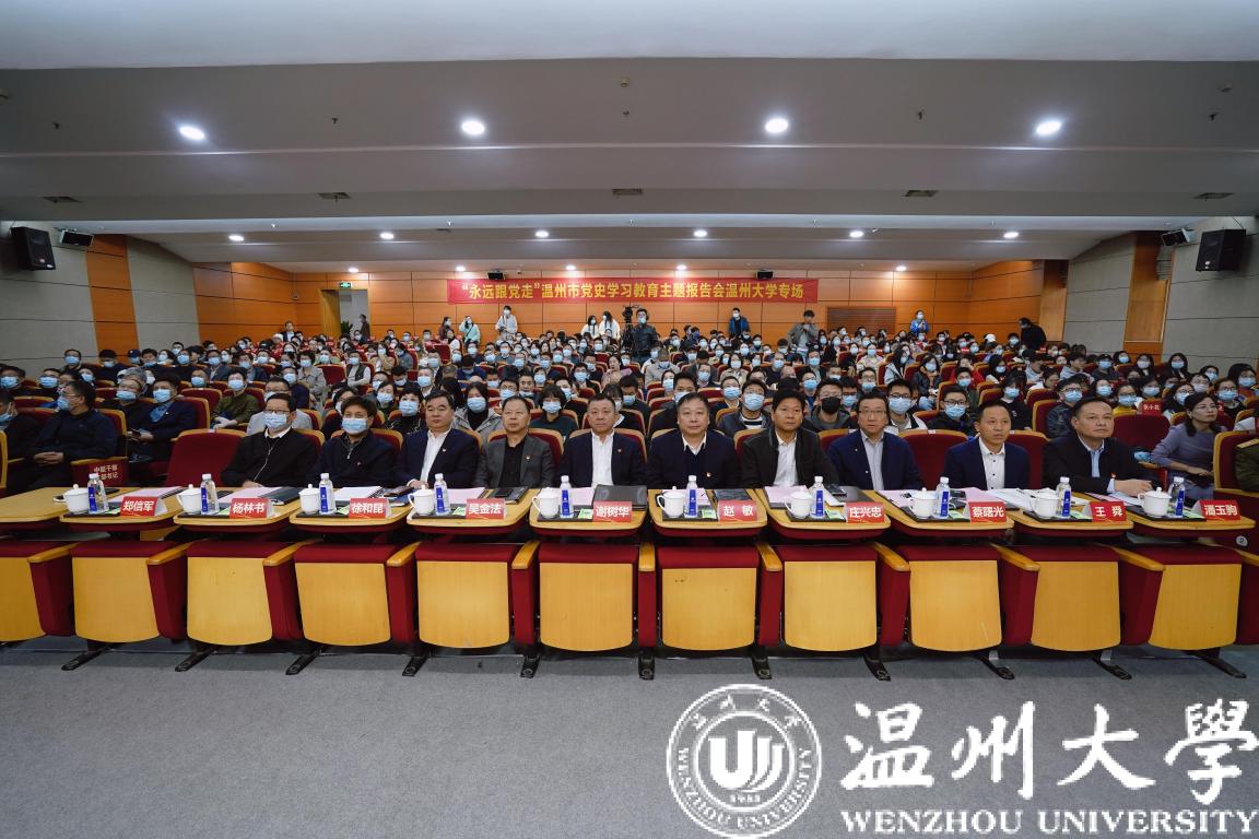 本次报告会由中共温州市委、温州市人民政府主办,中共温州市委宣传部、温州市党史学习教育领导小组办公室、温州日报报业集团、温州广播电视传媒集团和新澳门六合彩 共同承办。报告团“小切口、小故事”式的动情讲述,让整场报告会感人肺腑、催人奋进,激励着广大师生党员干部向榜样学习、向楷模致敬,从中汲取初心的力量、信念的力量、奋斗的力量。本次新澳门六合彩 专场报告会还设置了现场直播和各学院分会场,线上线下收看人数达3.5万人次。