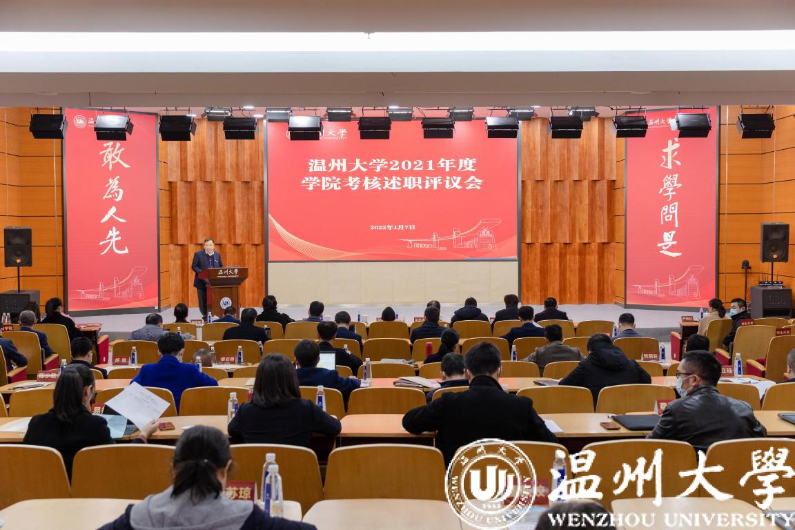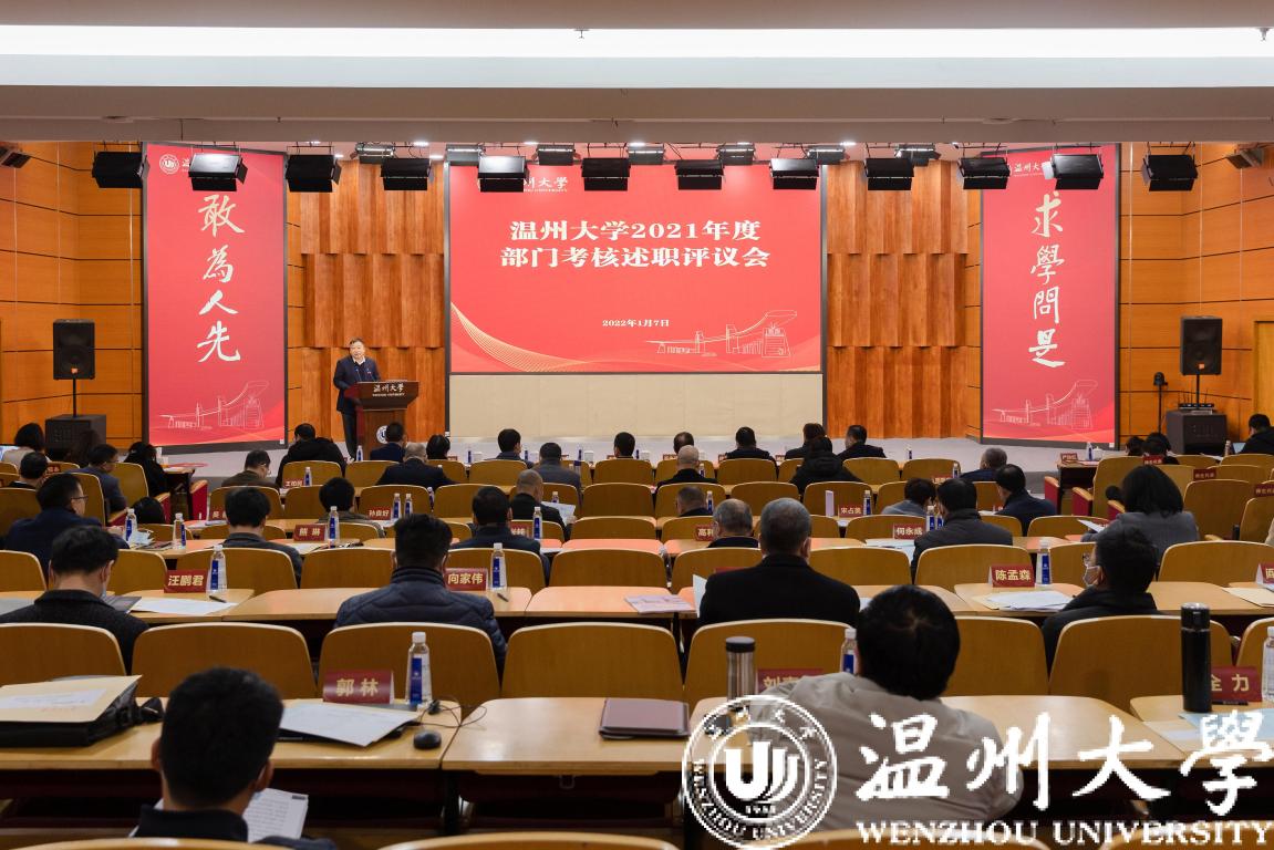 1月7日,新澳门六合彩 举行2021年度部门、学院考核述职评议会。部门、学院考核领导小组成员、学院党政负责人、职能部门负责人和部分师生代表参会。校长赵敏主持会议。