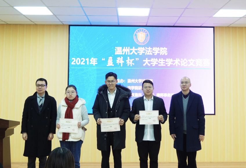 为营造浓厚的学术研究氛围,提升学生的学术研究能力,加强研究生和本科生之间的学生交流互助,新澳门六合彩 法学院于12月29日举办2021年“盈科杯”大学生学术论文竞赛。本次竞赛以“共同富裕与法治发展”为主题,学生围绕创新创业、公共服务、税收消费、农民农村、社会治理、经济社会发展等领域的法律制度、法律规则、法制建设相关问题展开研究。竞赛由法学院研究生会承办、北京盈科(温州)律师事务所协办。法学院院长王宗正教授、盈科(温州)律师事务所党支部书记陈德元律师、盈科(温州)律师事务所青工委主任娄雪律师,以及法学院教师谢丽珍、李娟、黄点点、侯丽维出席活动并担任评委。