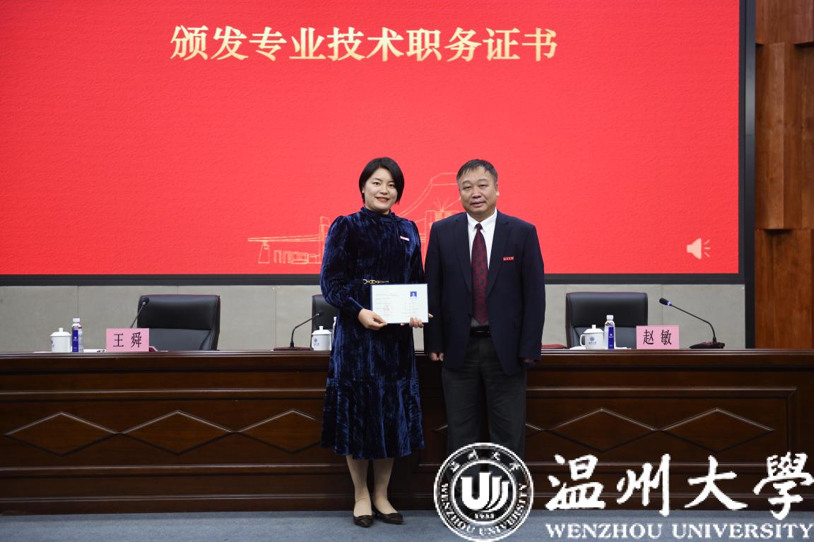 赵敏宣读新澳门六合彩 2021年专业技术职务聘任文件,逐一为2021年新晋升为高级专业技术职务的教师颁发证书并合影留念。化材学院国家级高层次青年人才袁一斐老师、商学院马媛老师分别作为晋升正、副高级职称的教师代表发言。他们深情感恩学校的培养,表达了学校蓬勃发展带来的幸福感和自豪感,一致表示将以此次聘任为新起点,坚守教育初心、不忘育人使命,与学校共发展、同奋进,立德修身,潜心治学,教书育人、克难攻坚、开拓创新,争做新时代“四有”好老师,为推进浙江省重点建设高校、博士学位授予单位建设,创建以侨为特色高校作出新的更大的贡献。