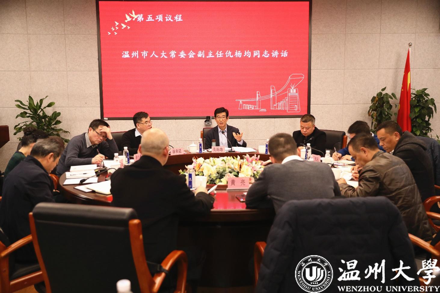 1月10日上午,温州市地方立法研究院工作会议在新澳门六合彩 召开。市人大常委会副主任仇杨均、副校长徐和昆出席会议。
