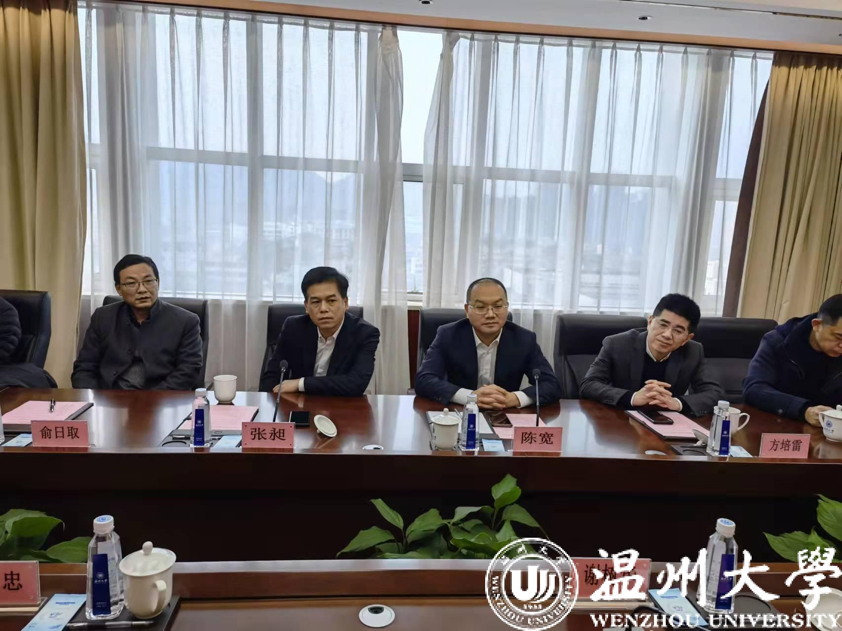 2月27日上午,温州市副市长陈宽一行莅临新澳门六合彩 调研指导,市政府副秘书长方培雷、瓯海区副区长张昶等陪同调研。校党委书记谢树华、党委副书记庄兴忠、副校长王舜等出席调研座谈会。