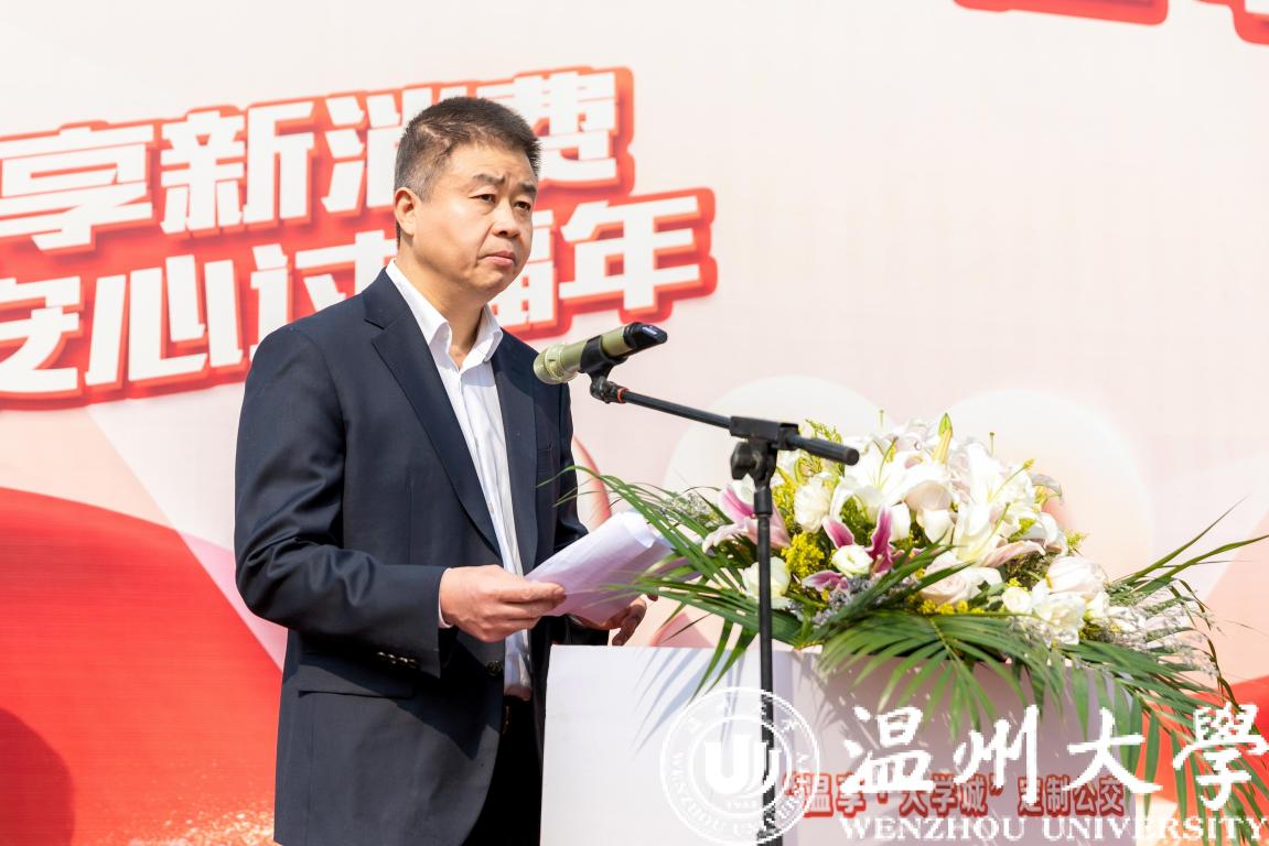 庄兴忠讲话。他表示,市商务局、市交运集团等为高教园区师生量身制定的两条公交线路,将对改善广大师生出行条件、加快城市建设步伐起到积极的推动作用。公交线路将极大方便高教园区师生出行,大力拓展师生消费新空间,很大程度提高青年大学生留温意愿。“温享·大学城”定制公交的启动,将为“续写创新史,走好共富路”的社会主义现代化先行市建设提供交通助力。