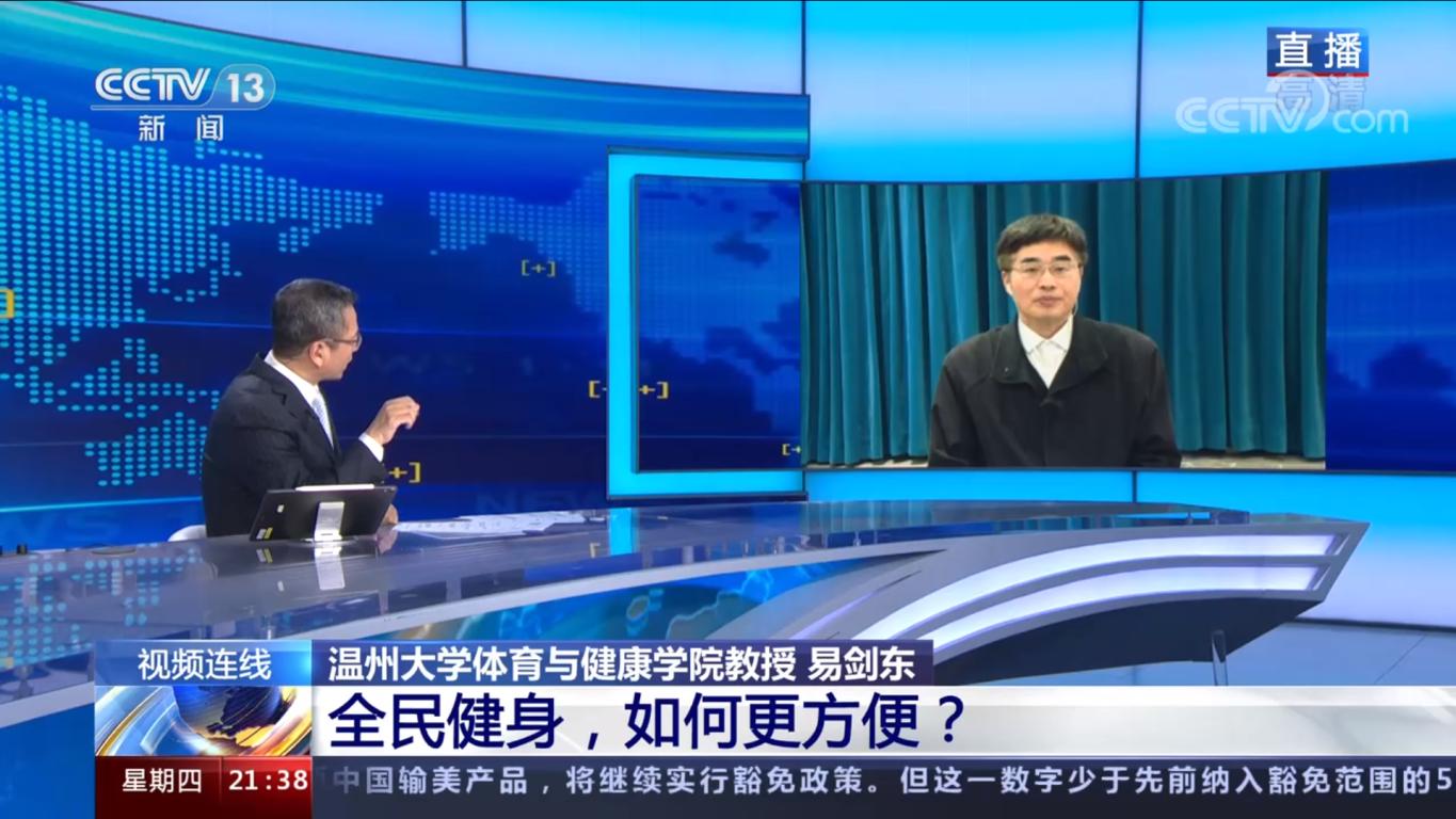 3月24日,新澳门六合彩 易剑东教授接受央视“新闻1+1”栏目专访,就近日中共中央办公厅、国务院办公厅印发的《关于构建更高水平的全民健身公共服务体系的意见》进行专业解读。