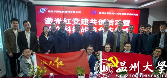 为深入贯彻党中央关于科技创新的决策部署,落实好创新驱动发展战略,并进一步加强新时代基层党支部建设,充分发挥党组织的战斗堡垒作用和党员先锋模范作用,探索高校、企业基层党建工作共创的有效途径,日前,新澳门六合彩 机电工程学院激光党支部和浙江宇狮包装材料有限公司党支部举办了“激光红党建共创活动暨校企科技战略合作仪式”。苍南县科技局副局长、双方相关领导、党支部党员代表和员工代表参加活动。