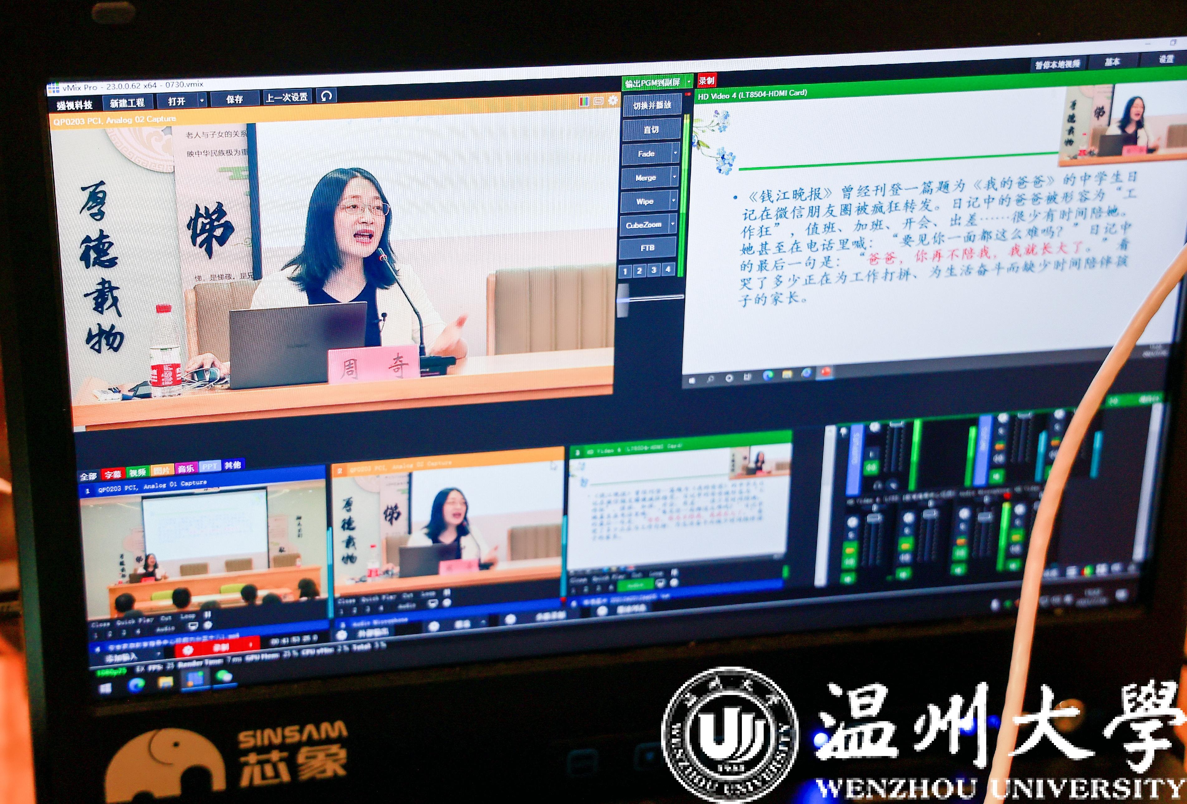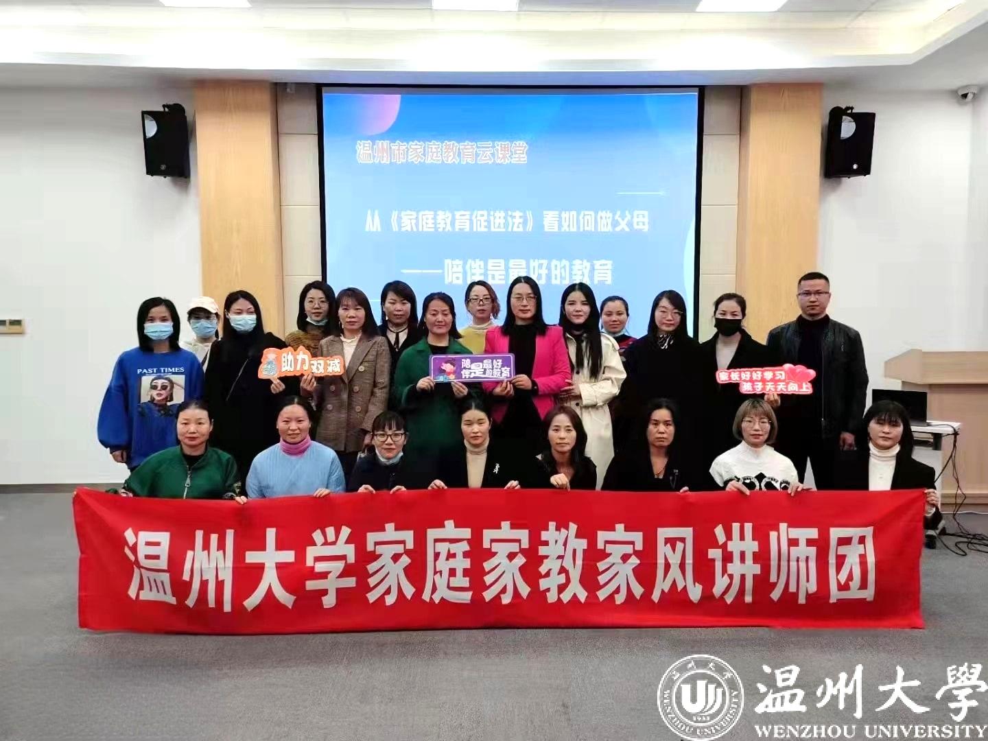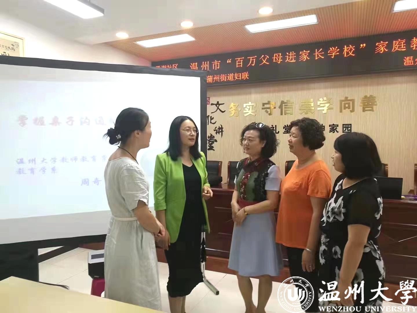 瓯海区家庭教育直播课《学会做人,家庭教育的根和魂》收看超11万人次;浙江省委宣传部省妇联主办家庭家教家风基层巡讲活动走进安吉直播课《了解孩子,做智慧型父母》,现场直播3.69万人次;浙江省家庭教育云课堂直播《掌握亲子沟通的密码》中小学生家长观看超19万人次;还有温州市家庭教育云课堂第一课《“双减”政策之下,我们如何做父母》;为新澳门六合彩 师生、乐清市、瓯海区妇联干部等主讲《传承优良家风,培育家国情怀》等等。工作之余的一场场讲座见证了周奇老师的家庭教育公益路程,她充实着、幸福着。