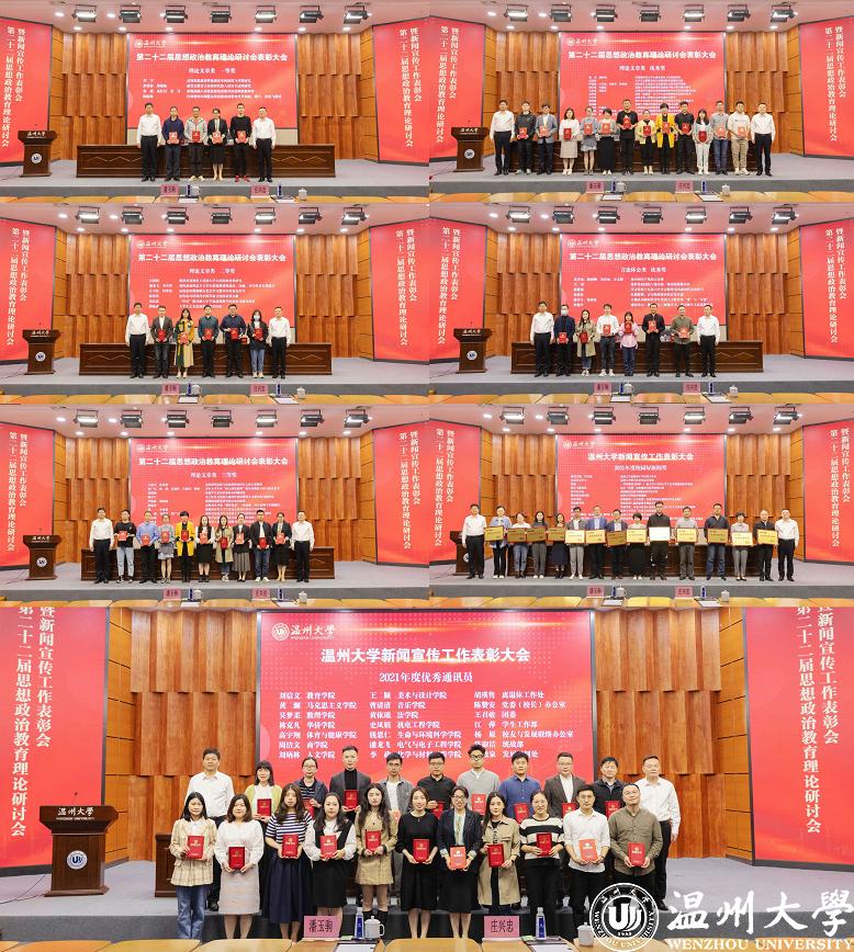 2021年,新澳门六合彩 紧紧围绕新时代新思想新理念新要求,就学校新闻与宣传思想文化工作开展了广泛的理论研究和实践探索,唱响新澳门六合彩 好声音,汇聚发展正能量,校园相关工作再上新台阶。会上,潘玉驹宣读了学校第二十二届思想政治教育理论研讨会优秀论文获奖者、2021年度校园好新闻获奖单位、校优秀通讯员以及全省校报好新闻获奖者等名单。会议对获奖单位和个人进行了表彰颁奖。