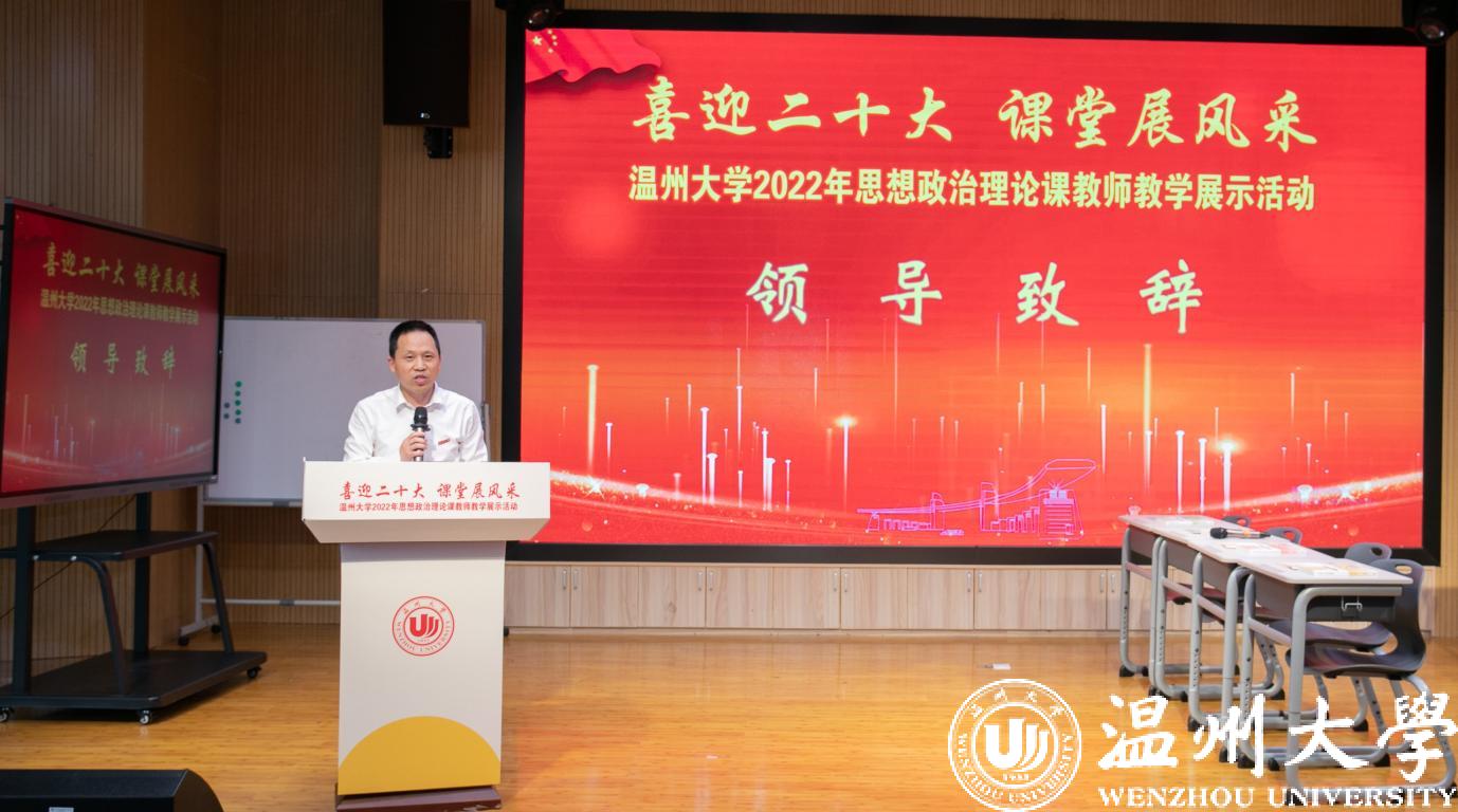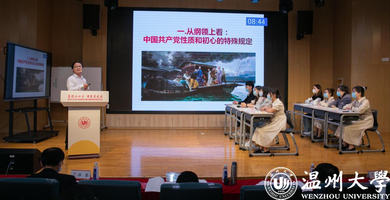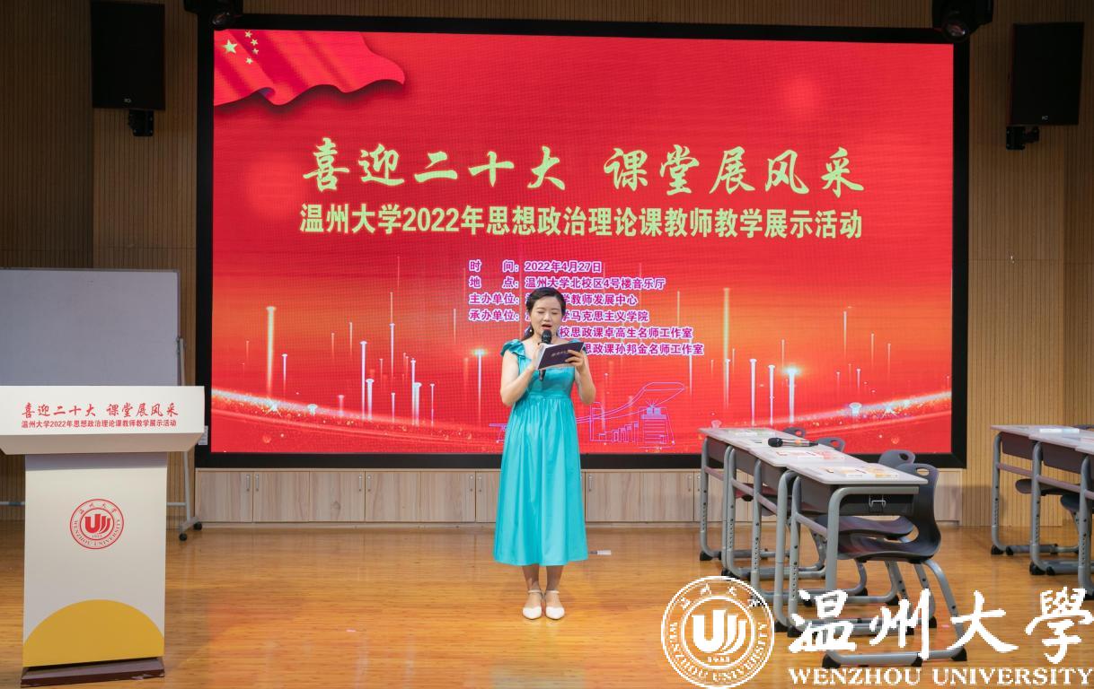 4月27日,喜迎二十大 课堂展风采——新澳门六合彩 2022年思想政治理论课教师教学展示活动举行。本次活动由学校教师教学发展中心主办,马克思主义学院、全国高校思政课卓高生名师工作室、省高校思政课孙邦金名师工作室承办。副校长王舜,校党委委员、宣传部部长潘玉驹,教发中心,教务处负责人等出席活动。浙江省高校思政课教指委委员、温州医科大学马克思主义学院院长崔华前等校内外专家担任评委。